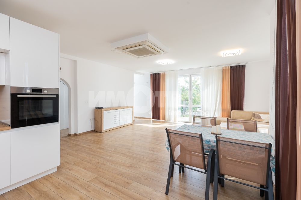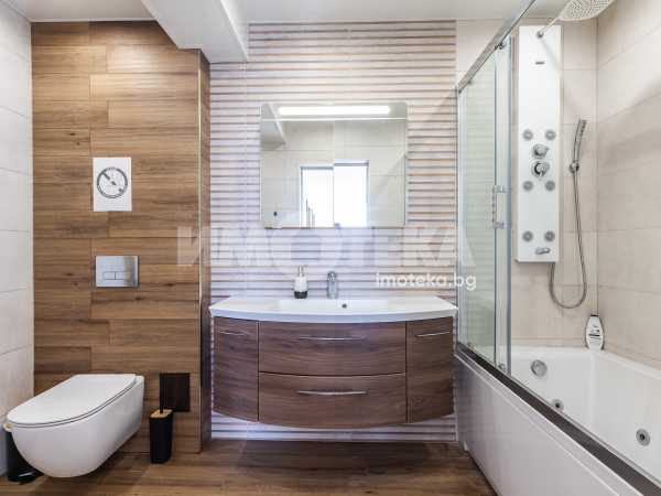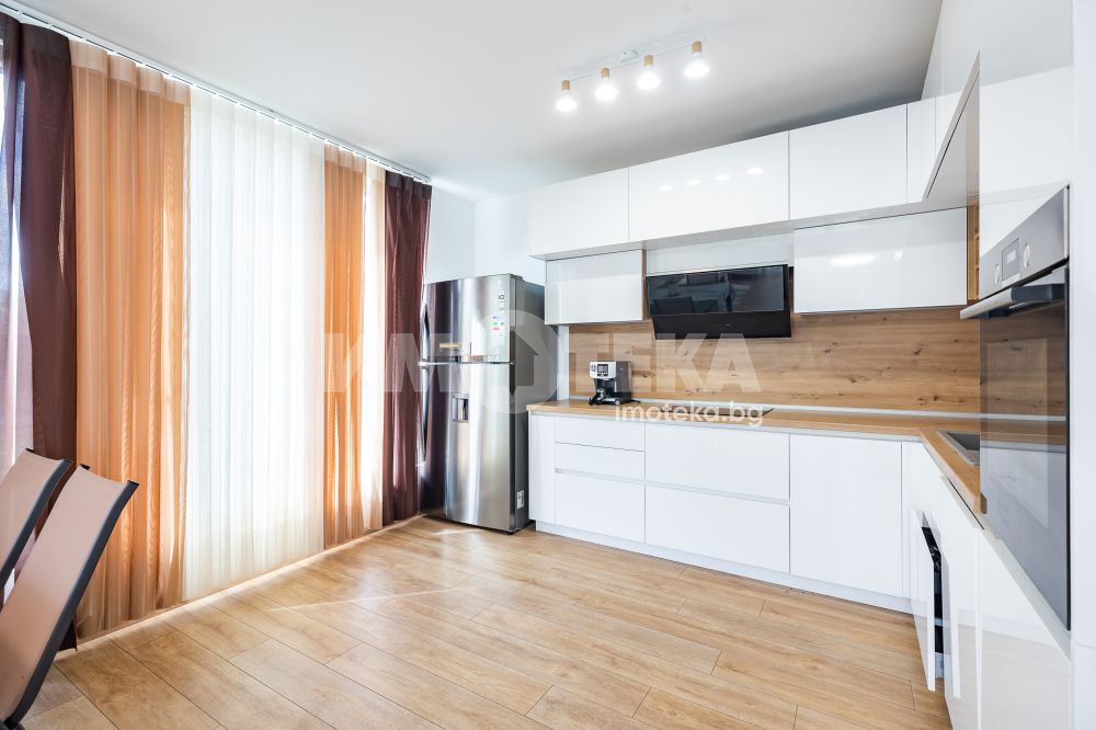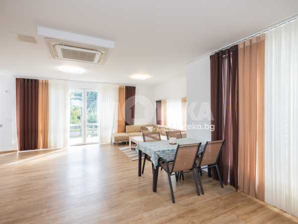 На първия етаж са разположени просторен и слънчев дневен тракт, тоалет с перално. Дневният тракт е с френски прозорци. От него се излиза на двора.