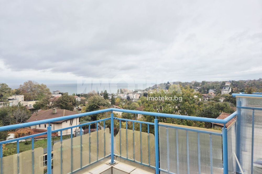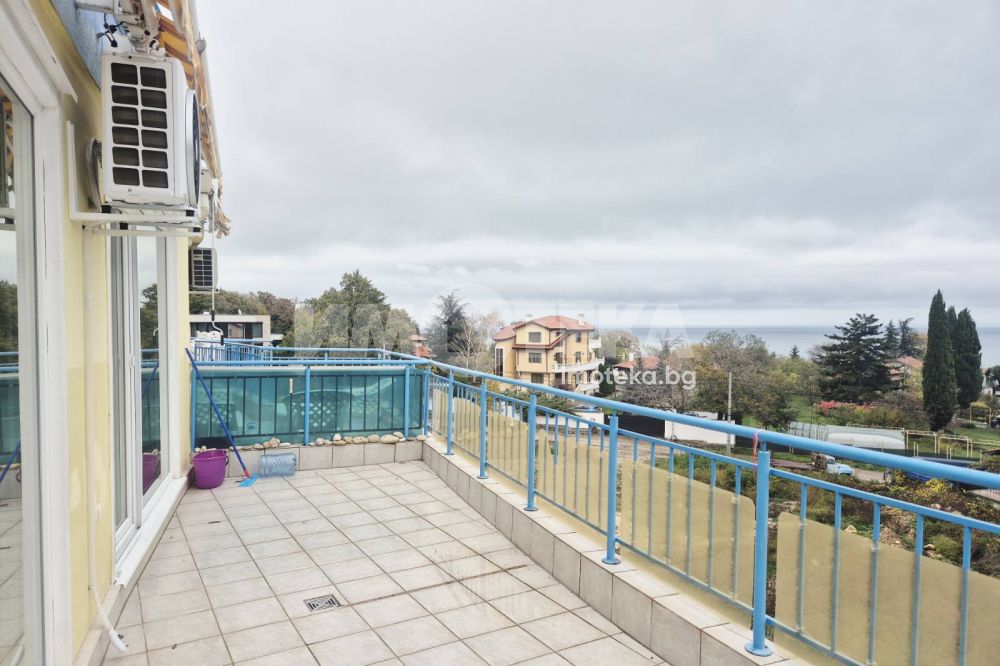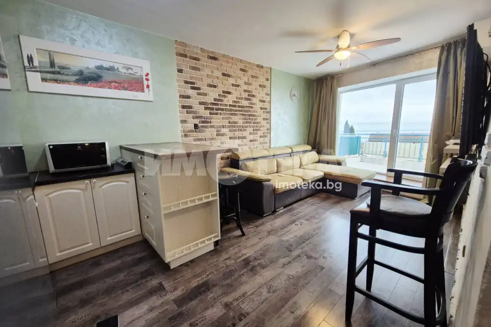 Тристаен апартамент с фронтална морска панорама от всички стаи. Предлага се напълно обзаведен, кокетен и уютен. Разполага с дневна, две спални, санитарен възел, излаз на простотна обща тераса от всички стаи.