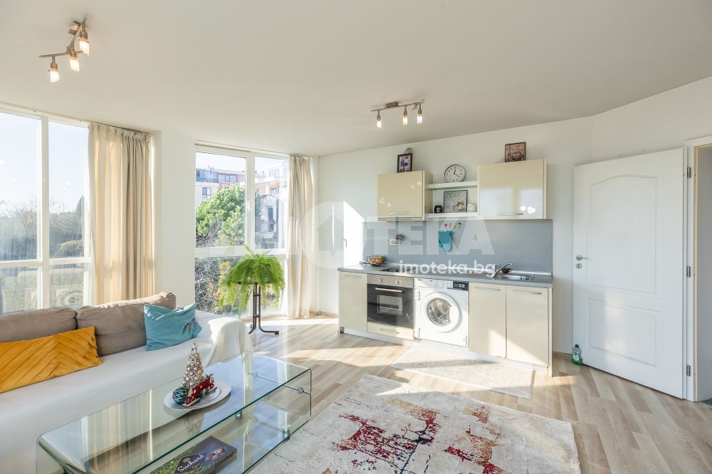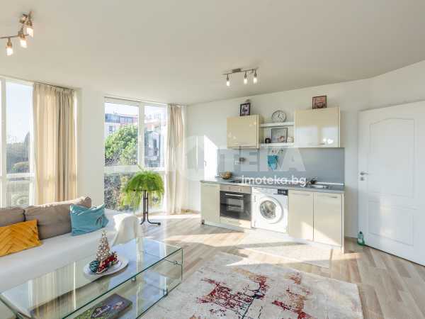 Aдрес недвижими имоти продава ДВУСТАЕН обзаведен апартамент с ПАРКОМЯСТО в цената в района на м-т Евксиноград. Жилището е разположено в тухлена сграда с АКТ 16 на 3-ти етаж от 4 етажа. Апартаментът е с площ от 75 кв.м., които са разпределени по следният начин: входно антре, всекидневна с кухненски бокс, спалня, санитарно помещение, тераса. Изложение: ЮГ.