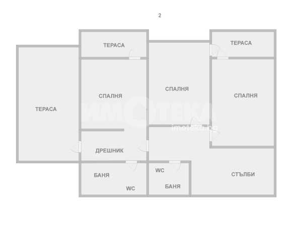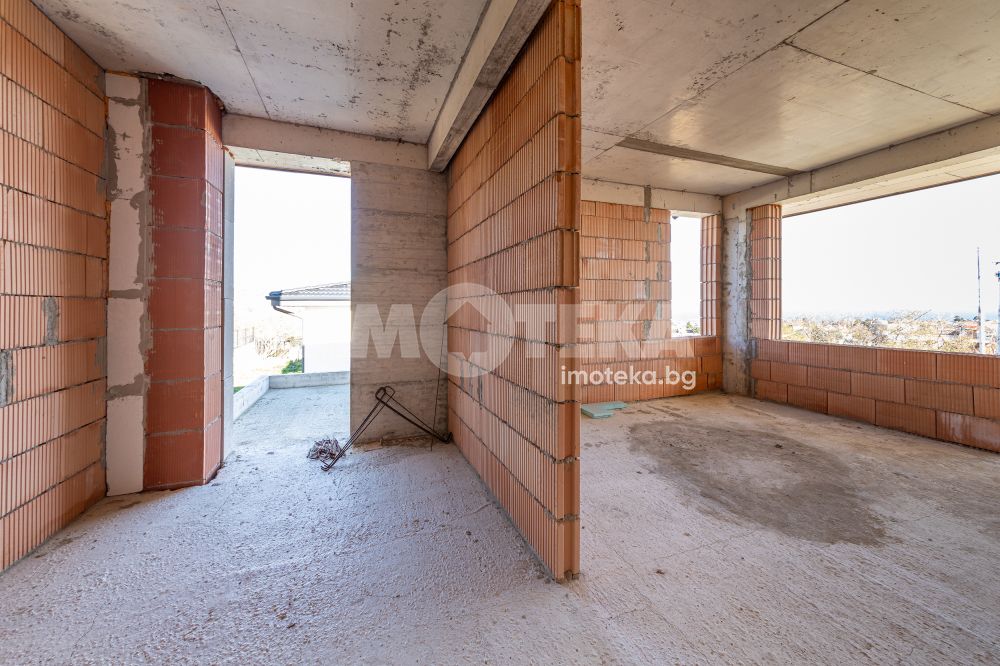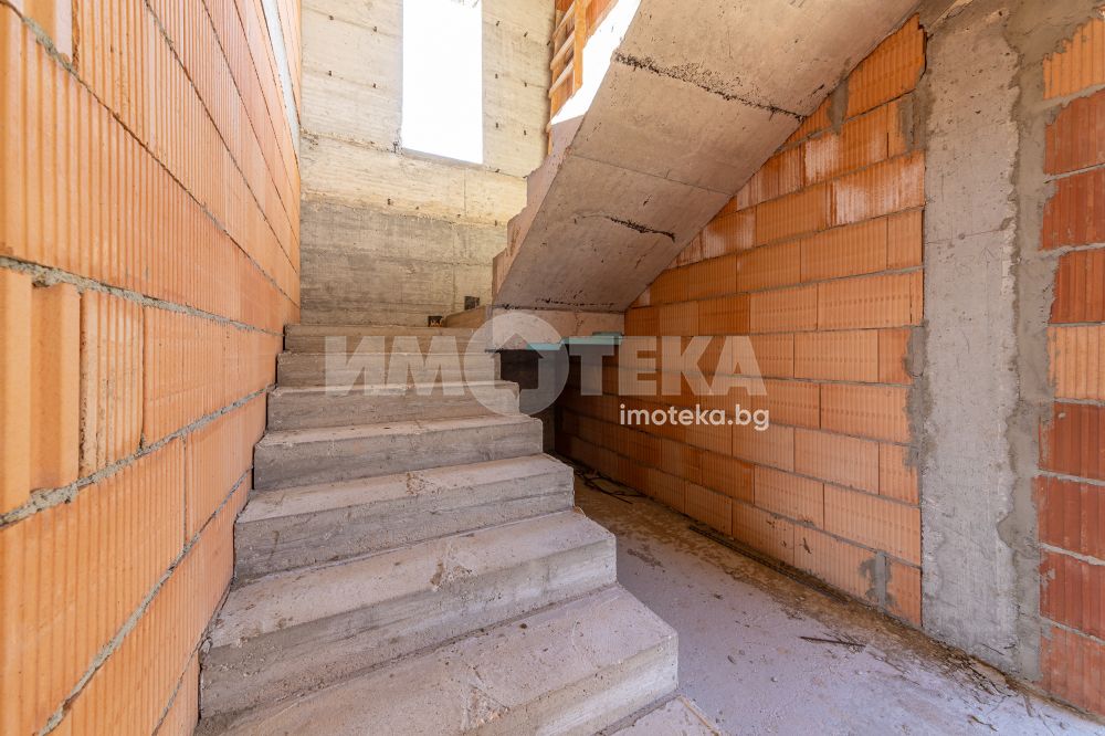 Вътрешно стълбище води към втория етаж където са разположени три големи спални, две санитарни помещение и голяма покривна тераса