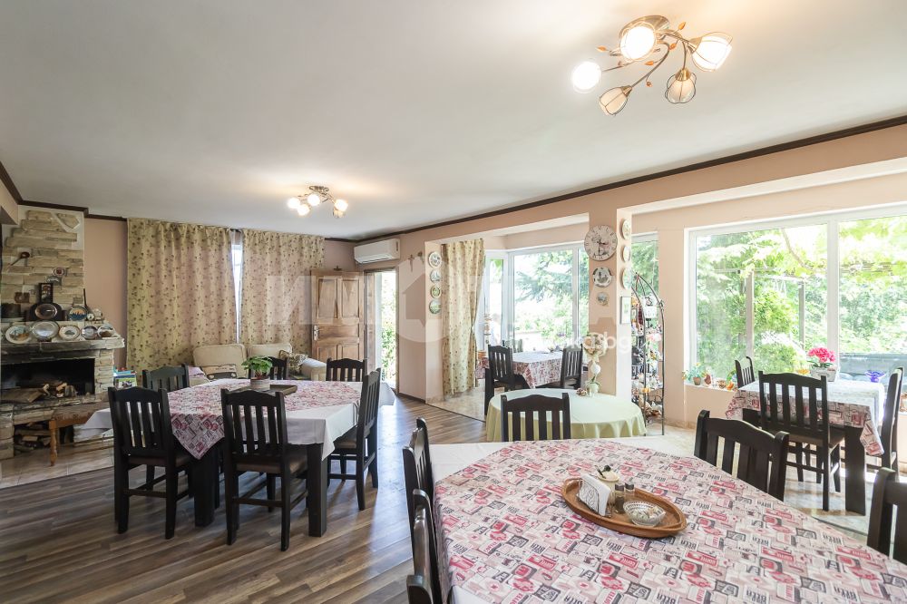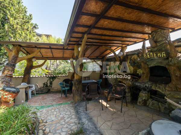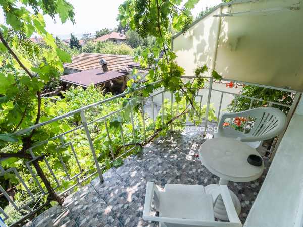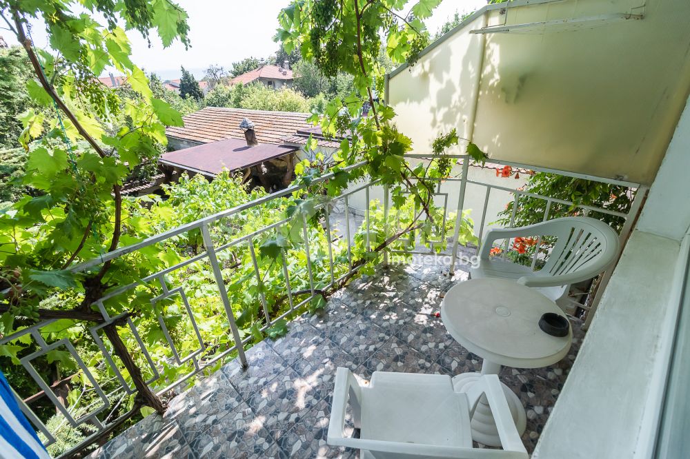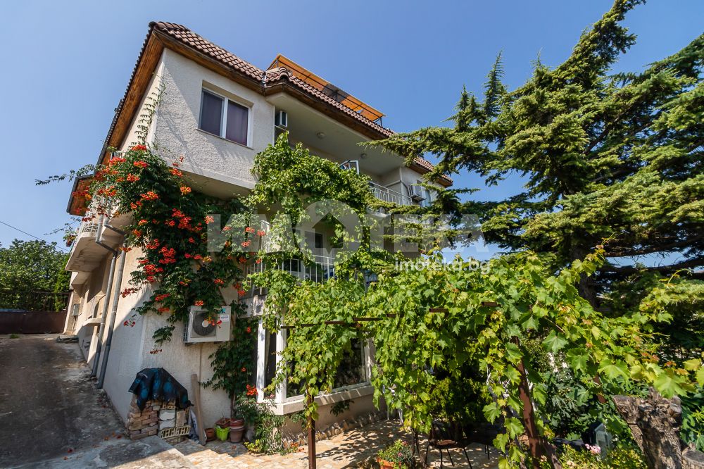 Представяме Ви за продажба къща с морска панорама в най-предпочитаната местност- Евксиноград. Сградата е на четири етажа с разгъната застроена площ от 697 кв.м. Първо ниво: на площ около 160 кв.м има входно антре, просторна дневна/ трапезария 60 кв.м с изход към двора и градината, кухня, перално помещение, тоалетна, други сервизни помещения и вътрешно стълбище към второто ниво. Второ ниво: три стаи, всяка с баня/тоалетна, кухненски бокс и тераса, общ коридор, сервизни и перално помещение, гараж, вътрешно стълбище към трето ниво. Трето ниво: седем стаи всяка с баня тоалетна и тераса, общ коридор, сервизни помещения, вътрешно стълбище към четвърто ниво. Последен етаж: 40 кв.м покривна тераса с обезопасен парапет и панорама към двореца „Евксиноград“ и варненския залив, две студия с кухненски бокс, баня/тоалетна и сервизни помещения. Стаите се отдават под наем за нощувки с висок рейтинг на Booking, редовни клиенти и висока заетост. Дворът с площ от 550 кв.м е добре оформен, красиво озеленен и аранжиран с кътове за отдих - беседка, барбекю и открити паркоместа. Прокарана нова централна канализация.