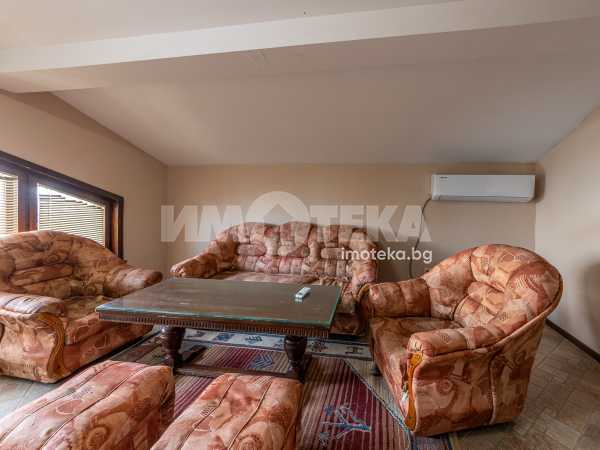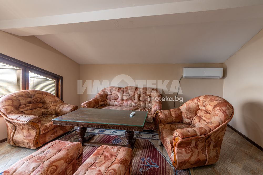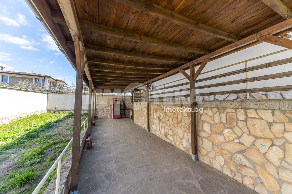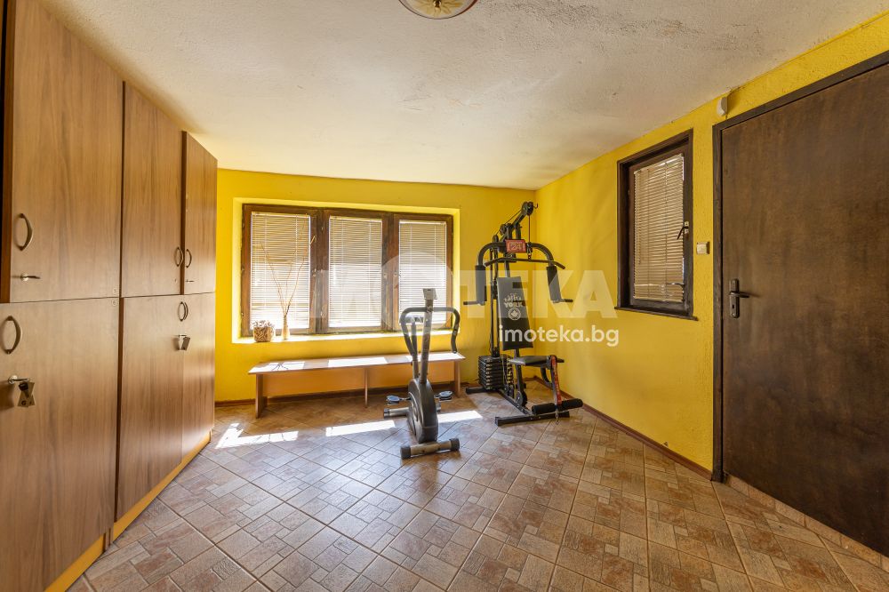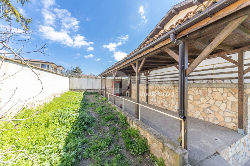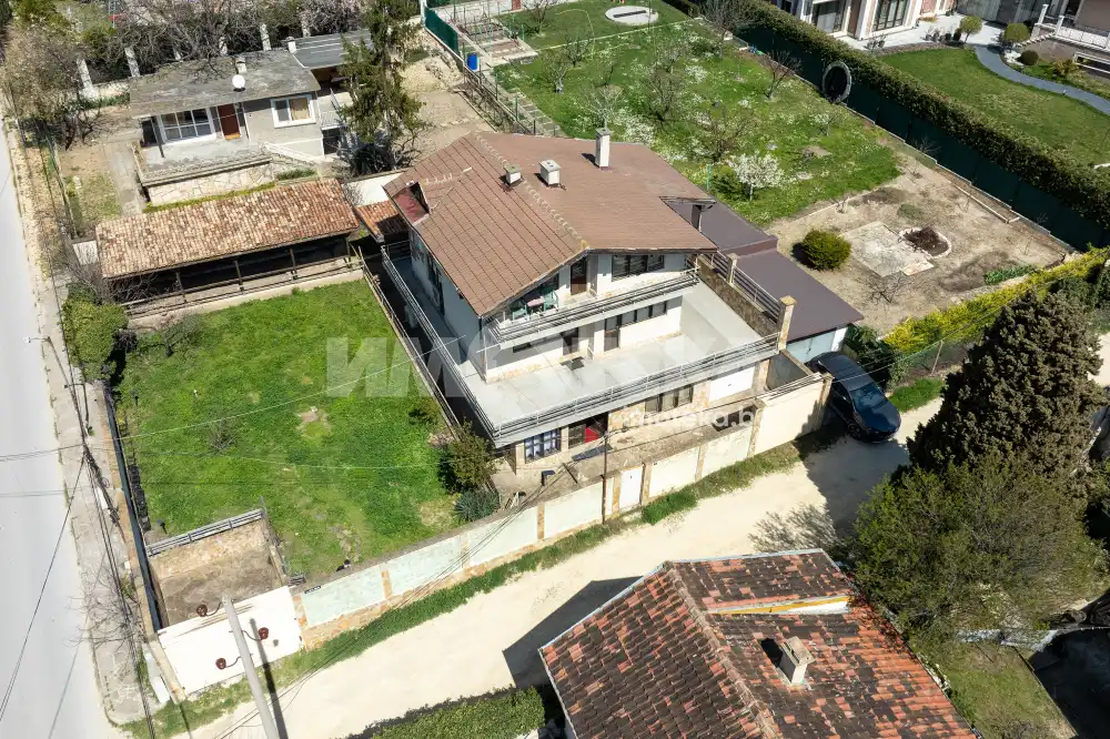 Избено помещение, три нива със собствени санитарни възли и възможност за обособяване като самостоятелни жилища, барбекю зона, лятна градина, два гаража.