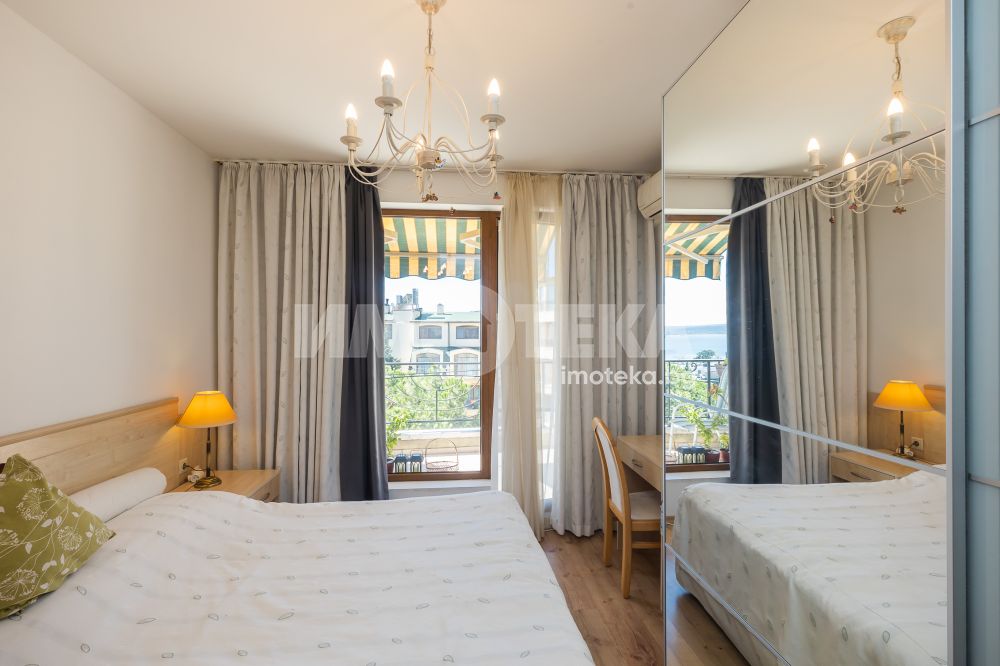 Само от АДРЕС! Предлагаме прекрасен тристаен апартамент с нескриваема панорама към Варненския залив. Жилището е изключително светло и просторно и се състои от голяма дневна с трапезария с обособен кухненски бокс, две спални, две бани с тоалет, просторен коридор, голяма южна тераса с невероятна морска панорама, още една тераса и килер. Апартаментът е стилно обзаведен и оборудван с висококачествени мебели и уреди. Отлично поддържани общи части, сградата е с контролиран достъп.