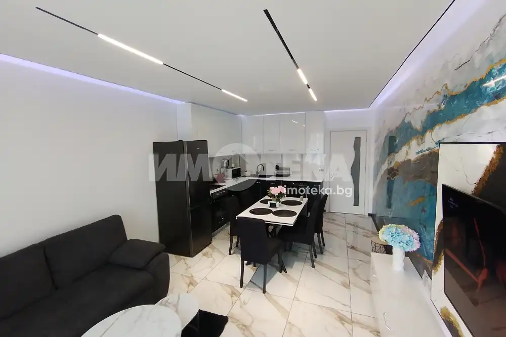 Прекрасен, стилно обзаведен и завършен тристаен апартамент в комплекс Белла Вита. Висок клас електроуреди и материали. Среден етаж, Изток-запад изложение. С опция за паркомясто.
