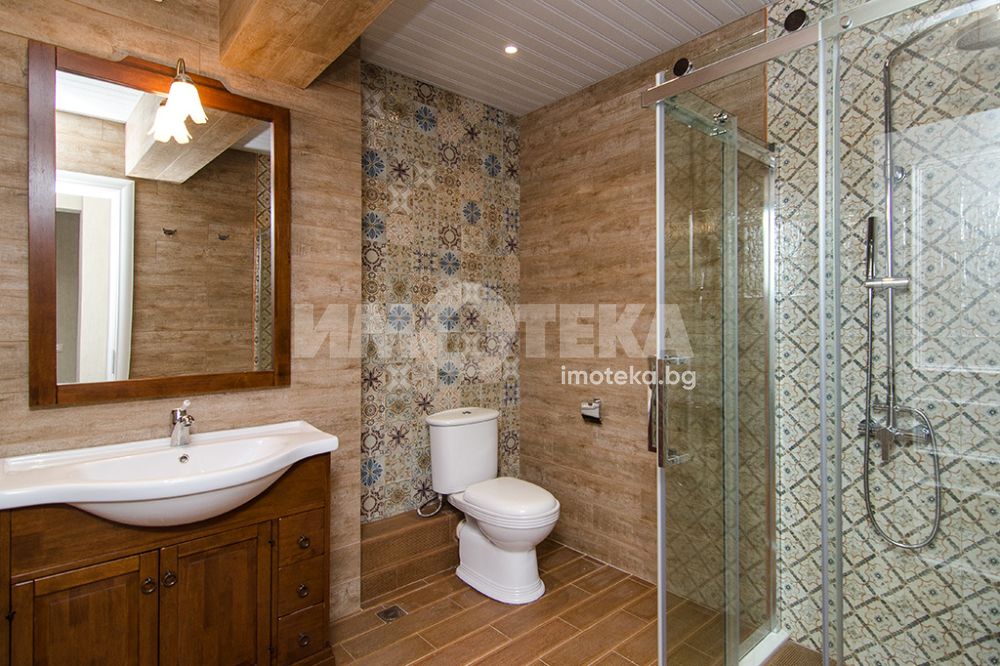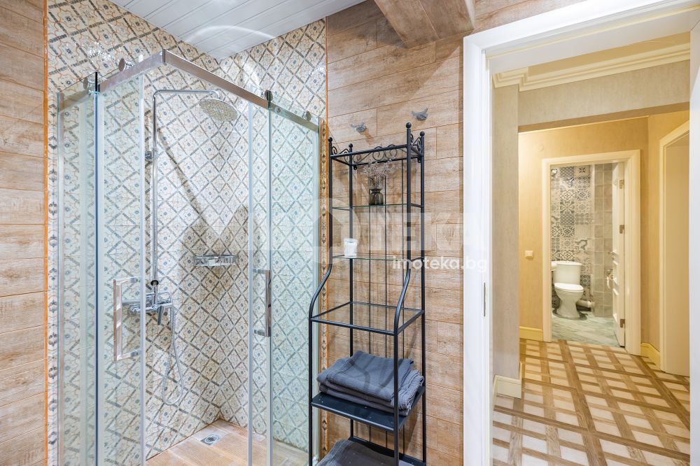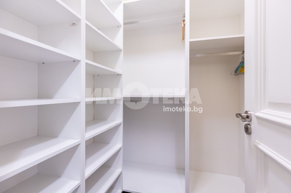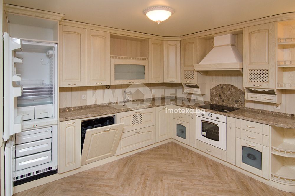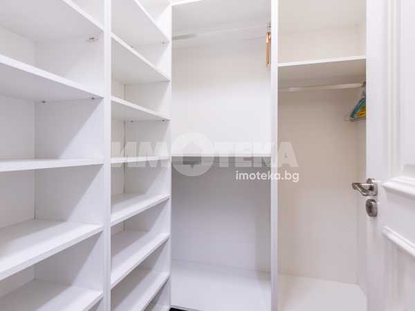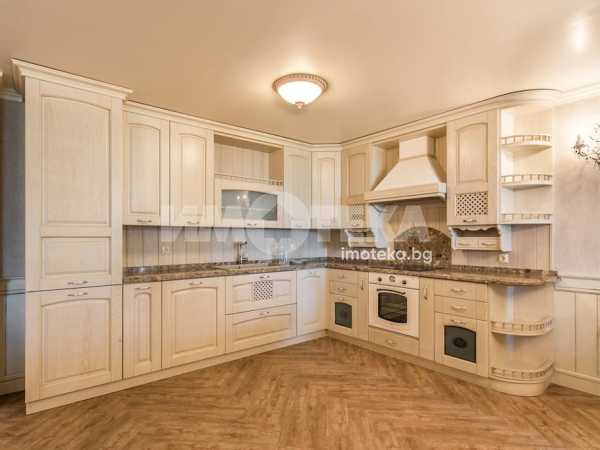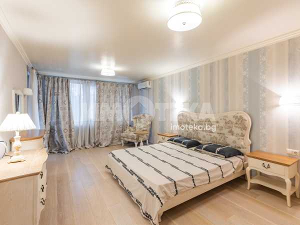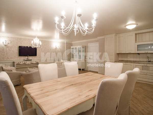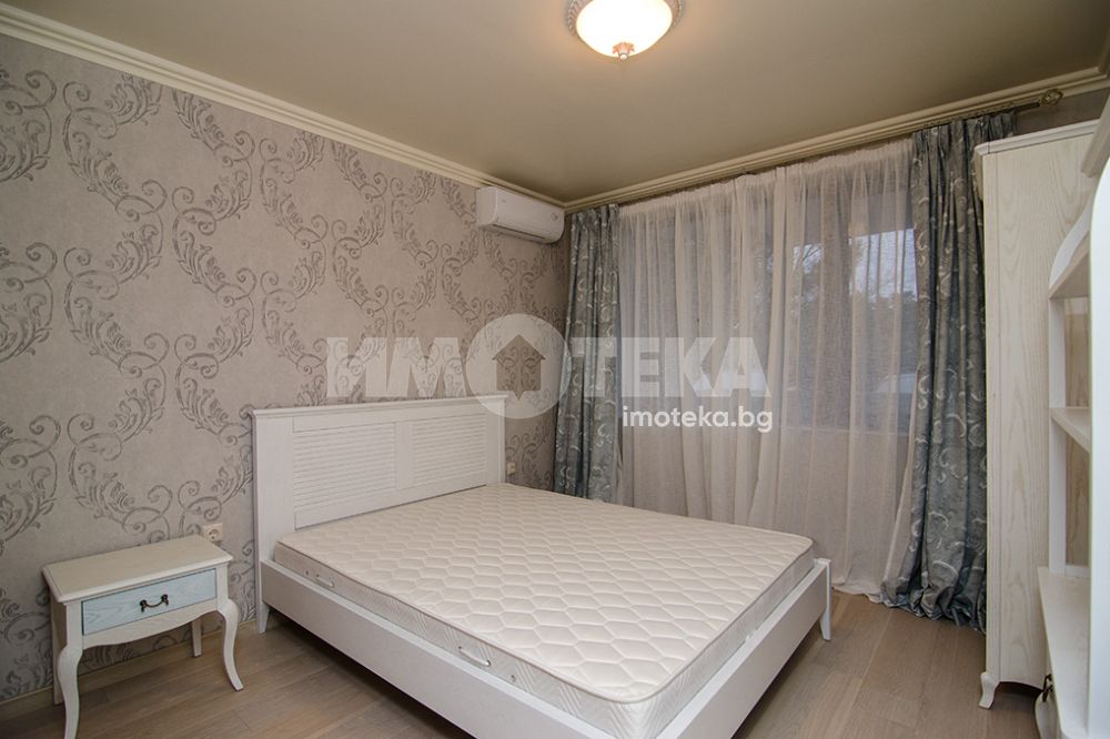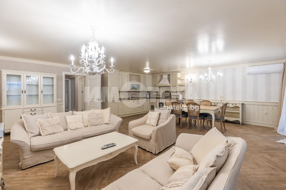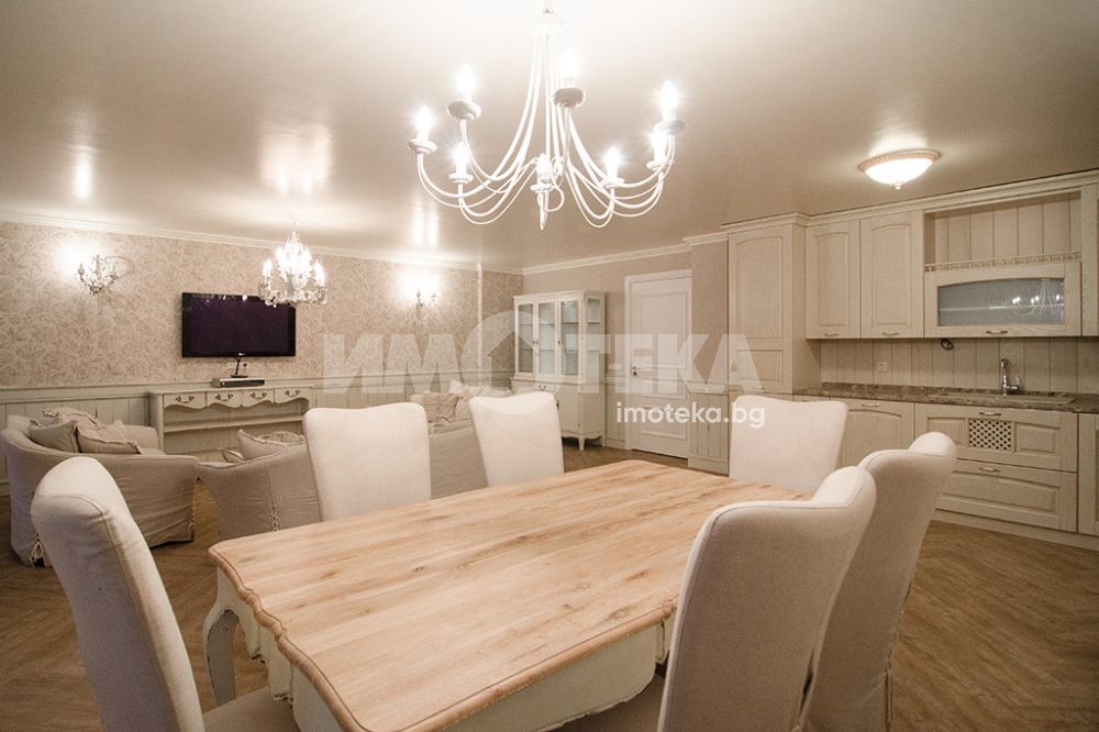 СЪСТОИ СЕ ОТ: голям дневен тракт, съставен от: кухня, трапезария, зона с мека мебел, коридор, перално помещение, гардеробно помещение, баня с тоалетна, втора тоалетна, две големи спални с излаз на тераса-лоджия, лятна дневна с площ от 45.30 кв.м., с лице към градината. Качествено обзаведен и оборудван имот.