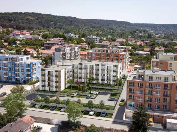 Модерна жилищна сграда в строеж с много зелени площи и страхотна панорама.
