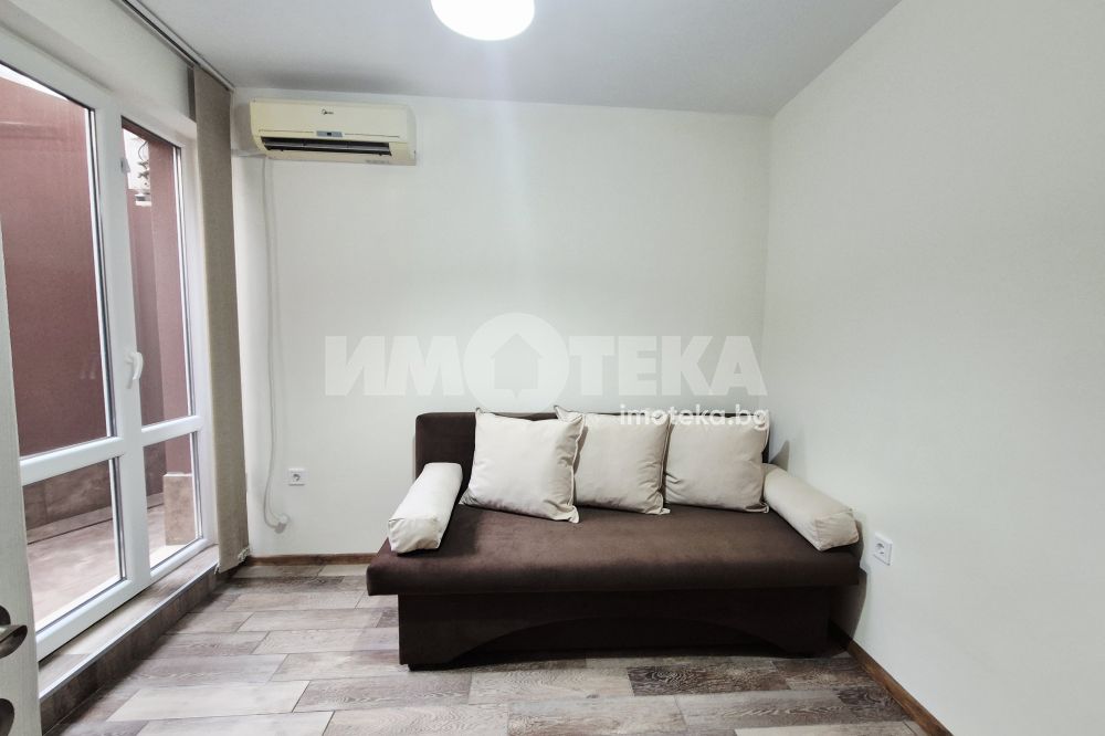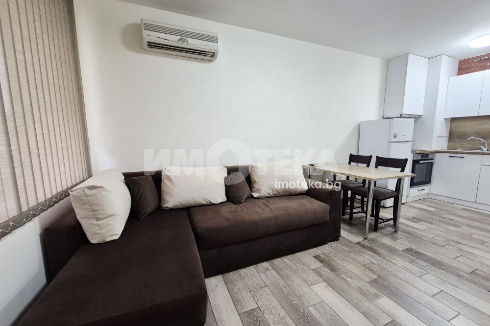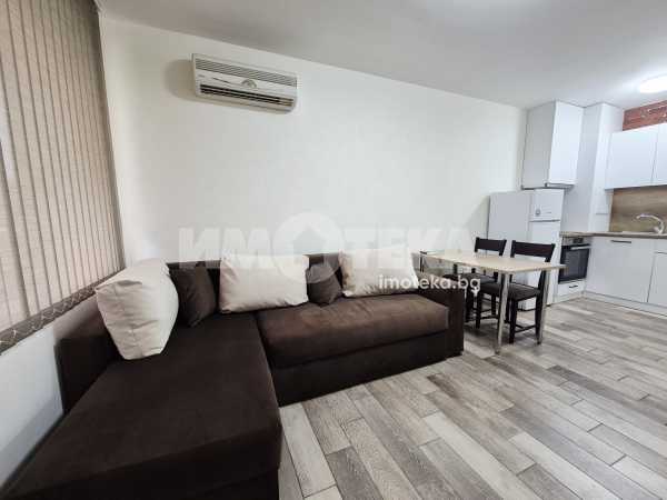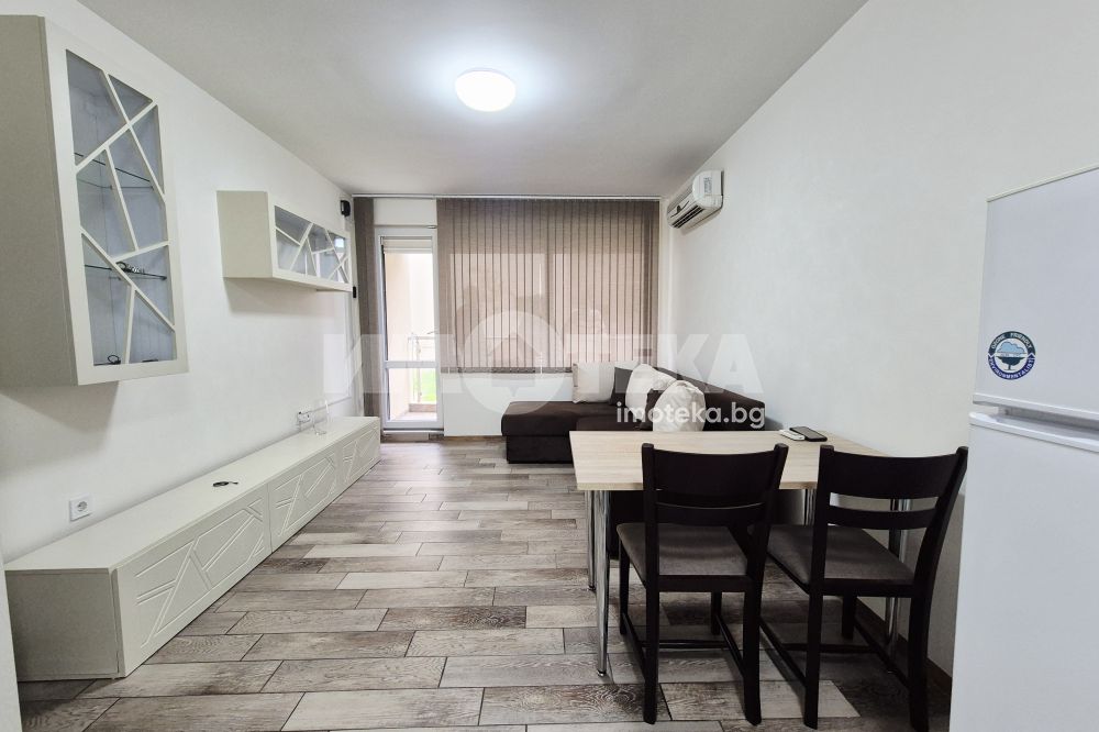 Представяме ви напълно обзаведен двустаен апартамент. Жилището се състои от дневна с комфортна мека мебел и кухненска част - климатик, спалня обзаведена с разтегателен диван и гардероб, баня с тоалет, коридор и две тераси, едната с ролетна щора. Отдава се за дългосрочно. Не се допускат домашни любимци.