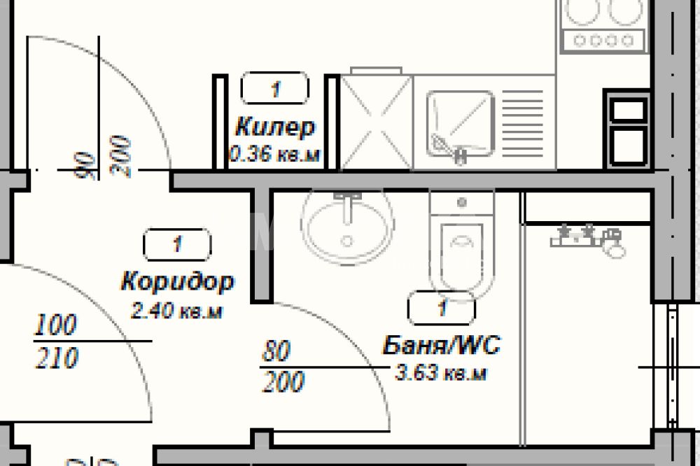 Двустаен апартамент, разположен на среден етаж, състоящ се от всекидневна, спалня, баня и тоалет, тераса, коридор.