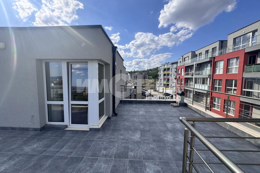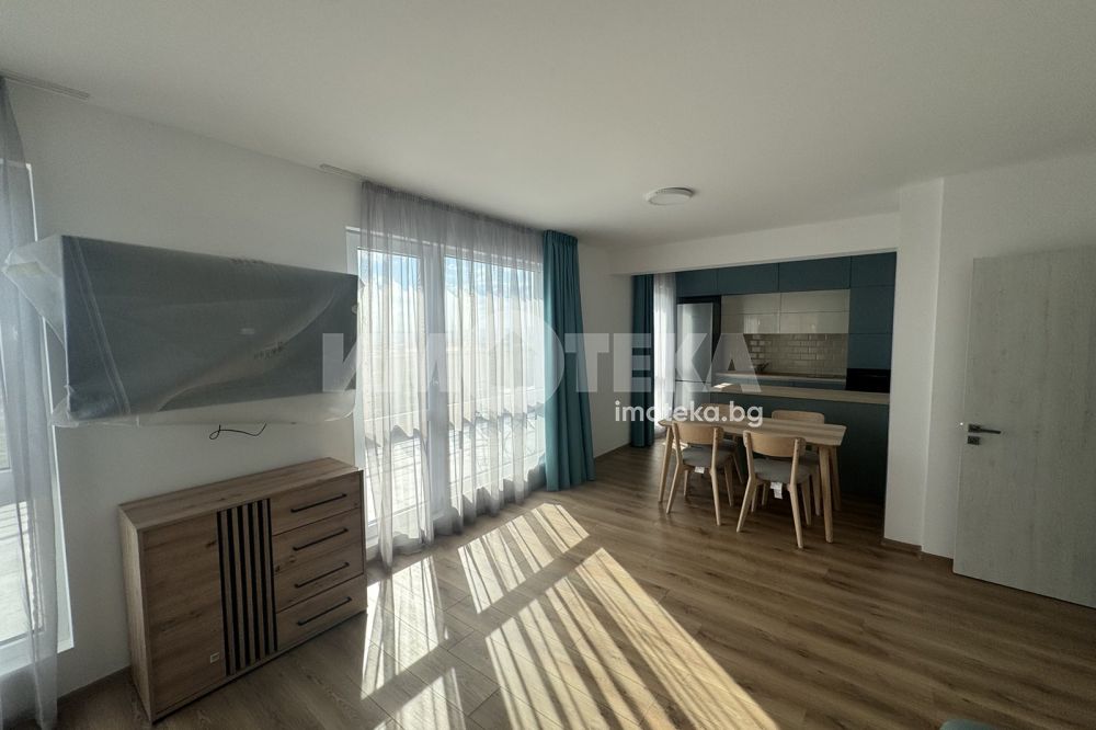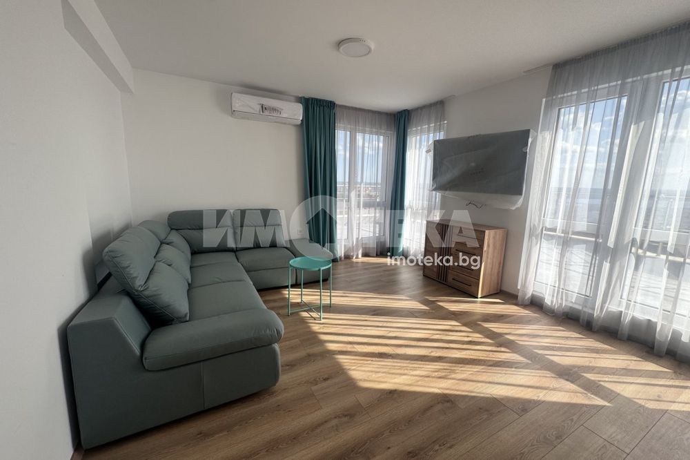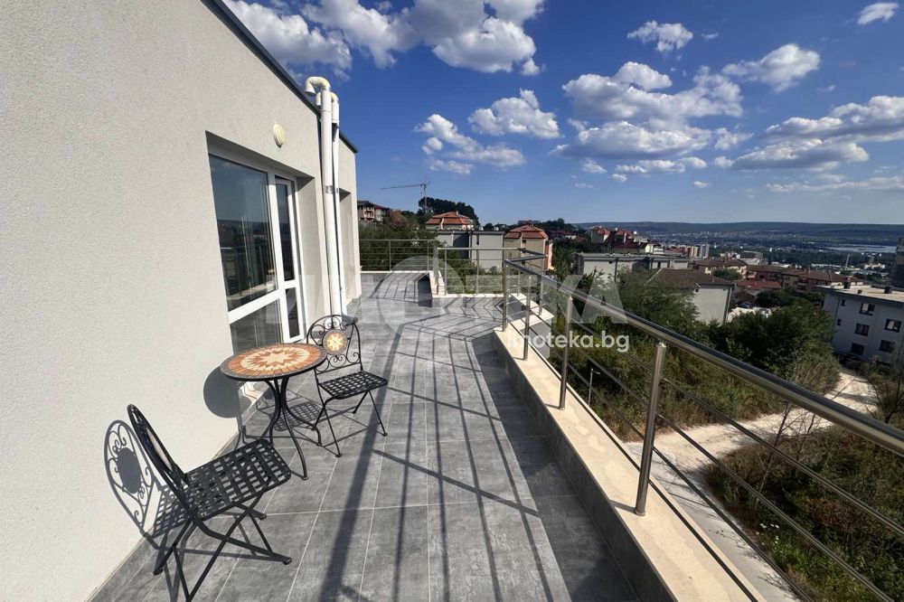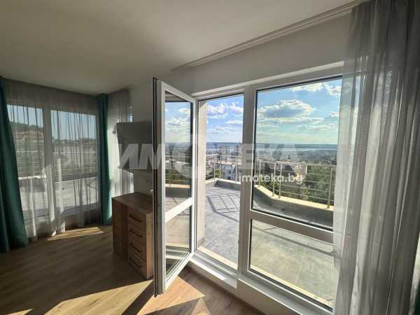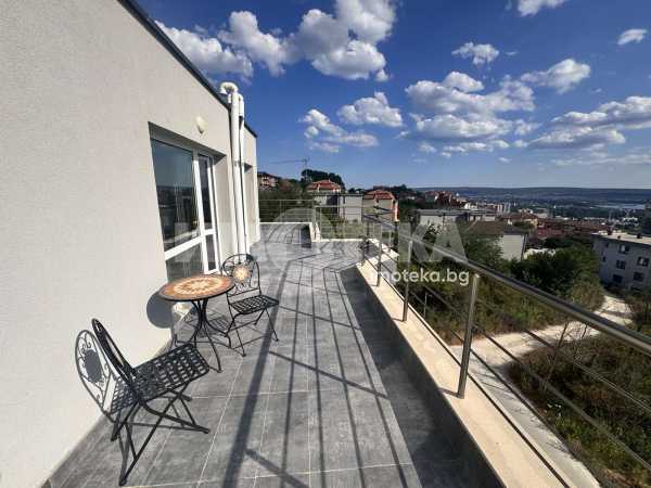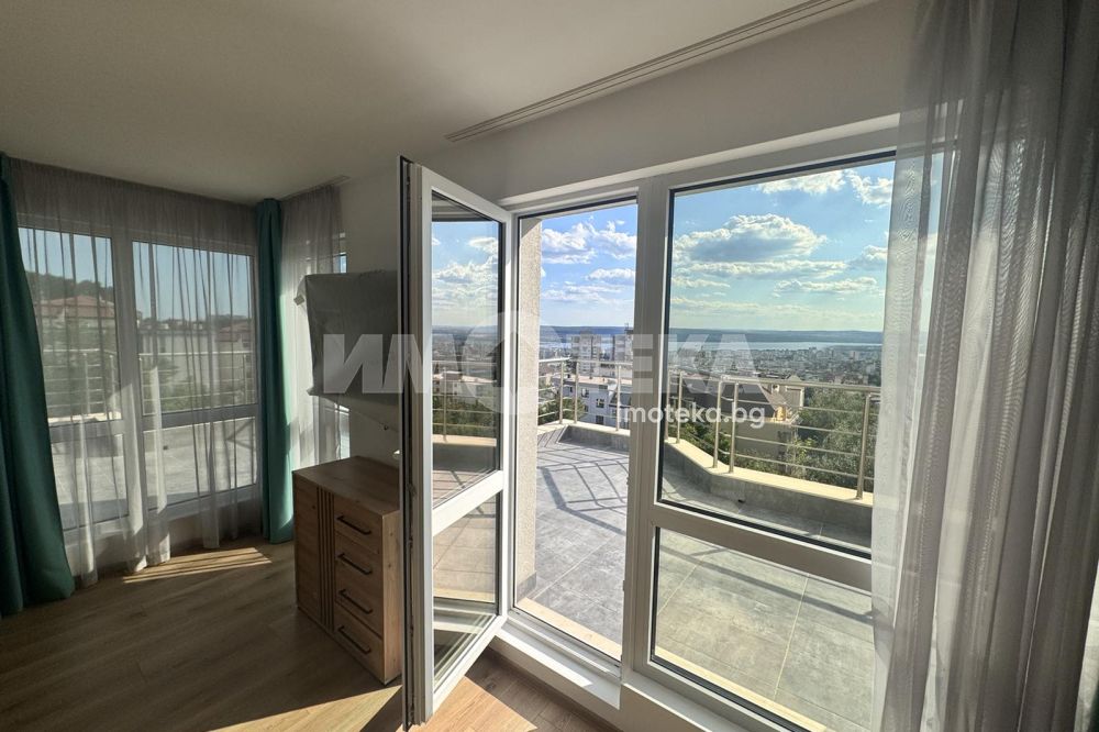 Жилището е чисто ново и се състои от слънчева дневна с разтегателна мека мебел и кухня (включително съдомиялна), спалня с двойно легло, баня с душ кабина и тоалет, мокро помещение с пералня и сушилня, огромна тераса: 90 кв.м – опасваща целия апартамент, която предлага красива панорама към Варненското езеро. Отопление и охлаждане с два климатика. Включено паркомясто в цената! Възможност за второ паркомясто. Отдава се дългосрочно.