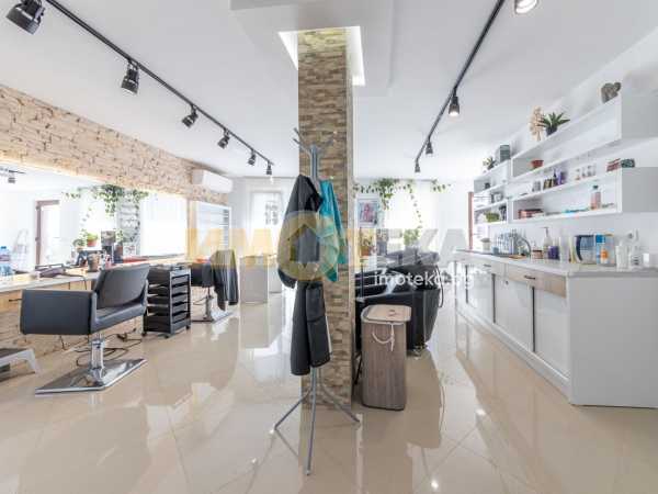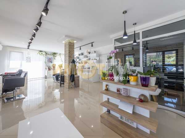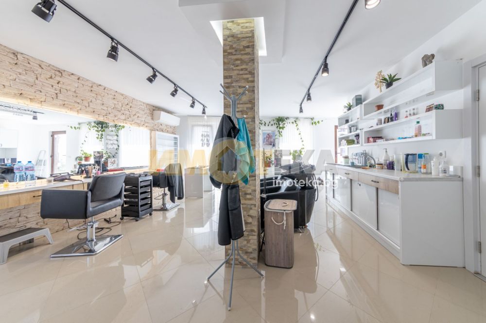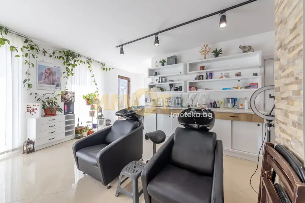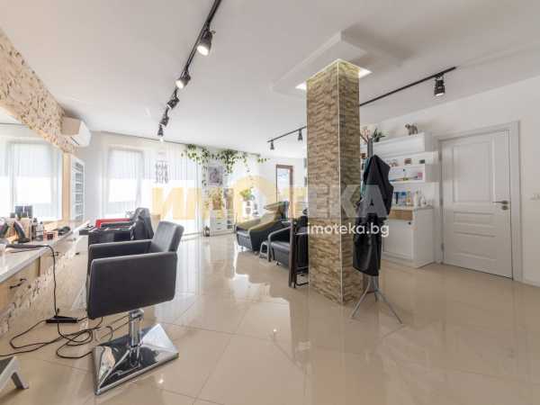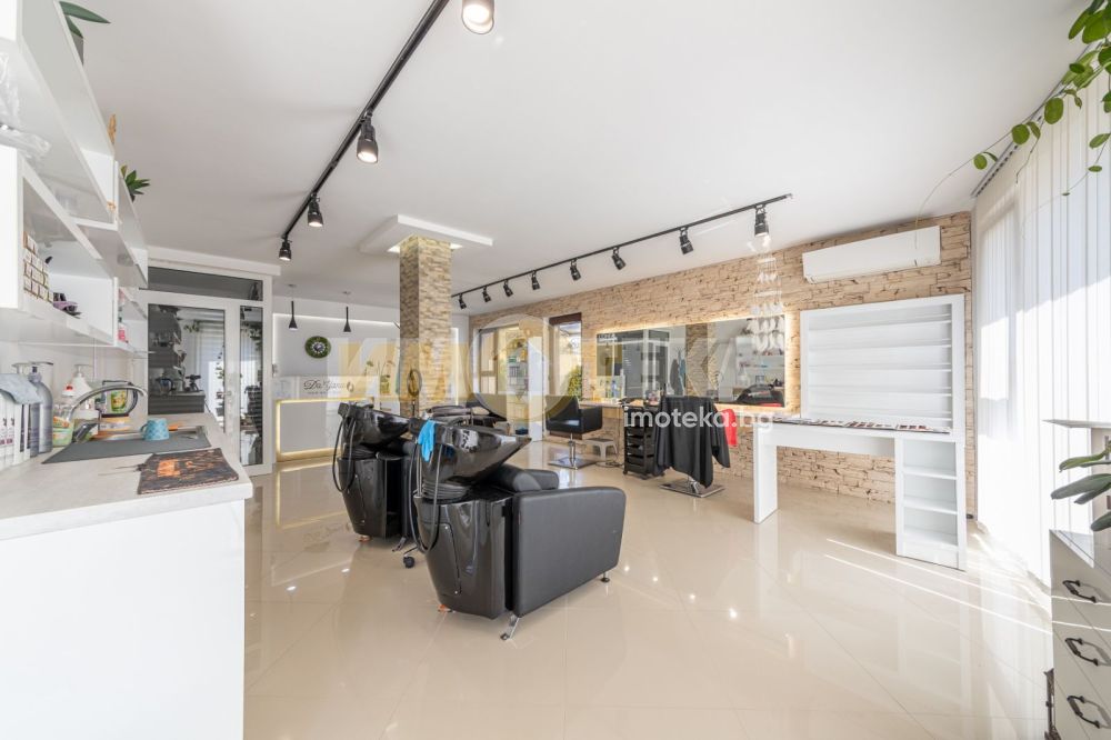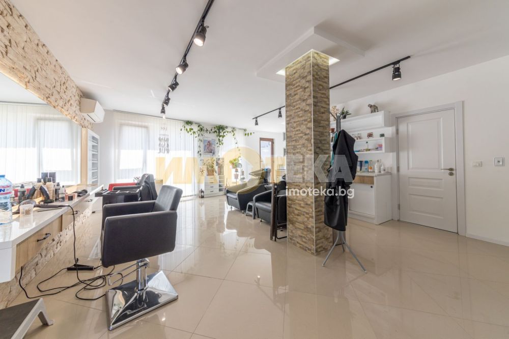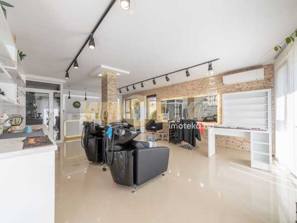 ИМОТЕКА отдава под наем луксозно обзаведен салон с площ по нотариален акт 71.27 кв.м. Има обособени зони за козметика и масаж, педикюр и маникюр и два работни стола за фризьори . Предлага и паркомясто за клиенти.