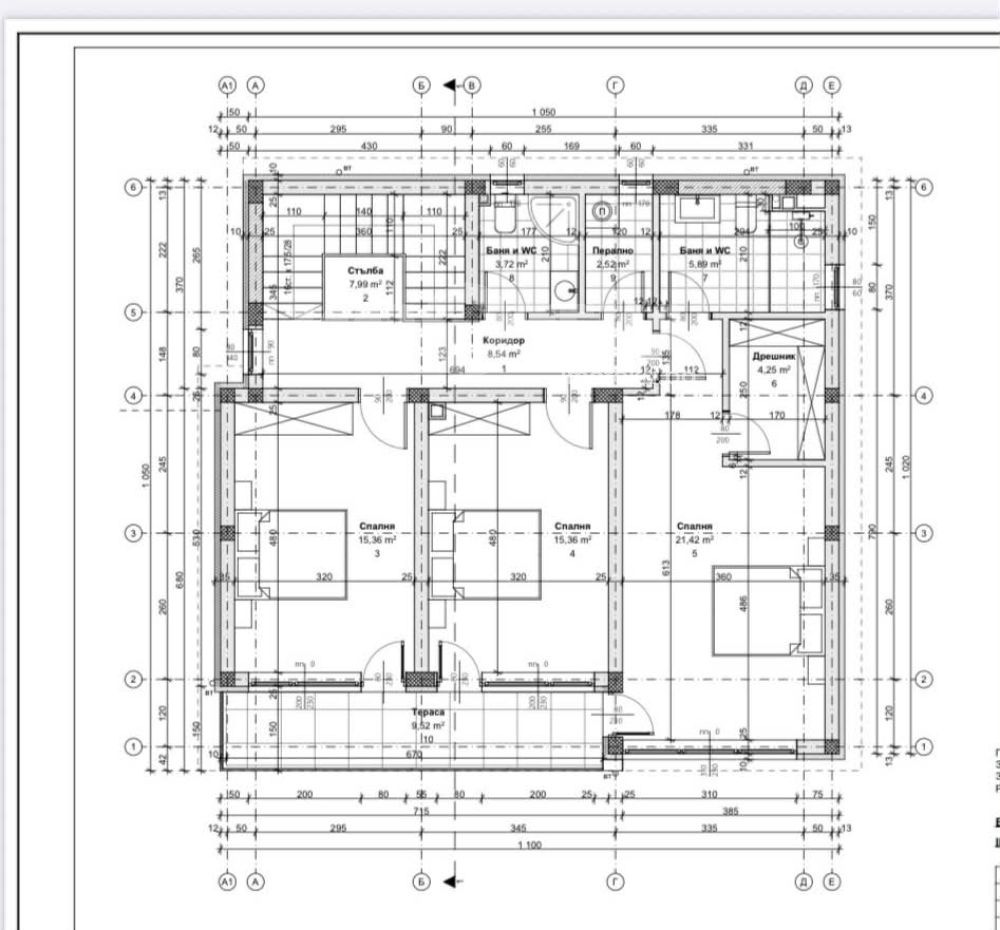 3 то ниво: 3 големи спални от 21 кв.м., 15,3 кв.м. и 15,3 кв.м. ,дрешник, две бани, перално помещение ,коридор ,тераса