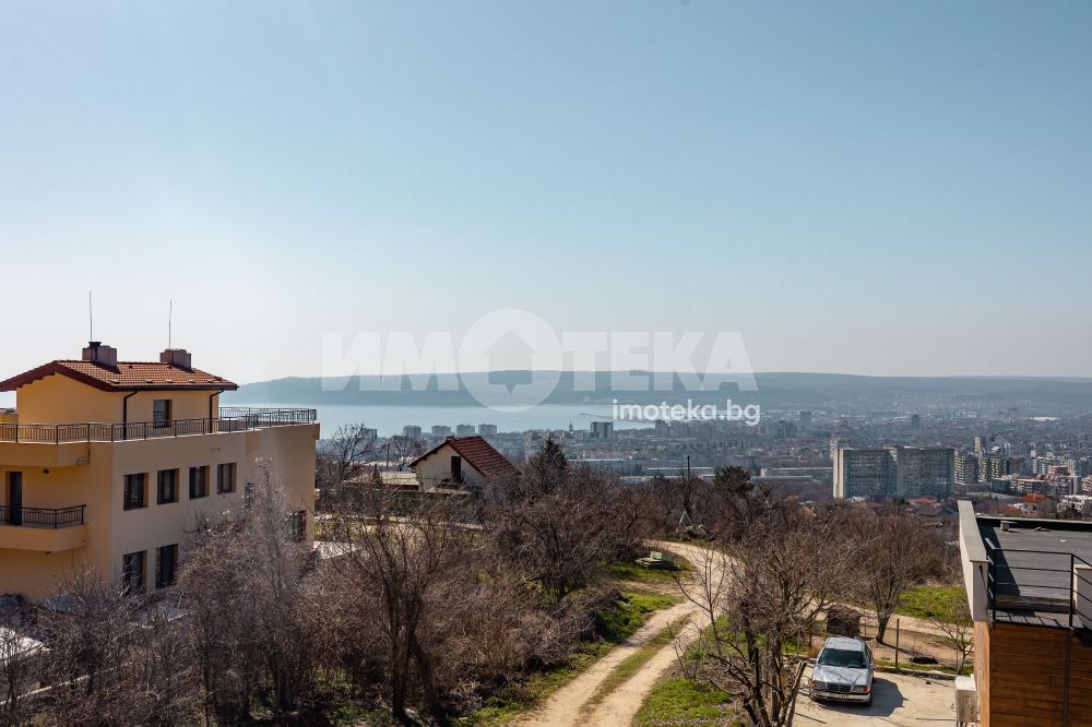 Френски прозорци разкриващи гледка към целия град, Варненско езеро и морето.