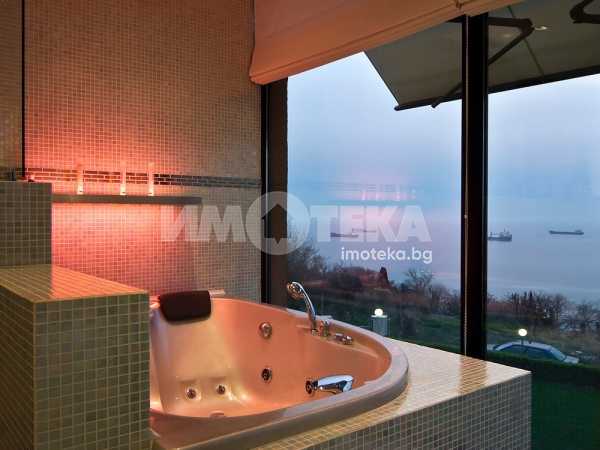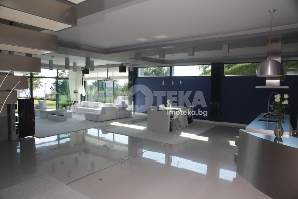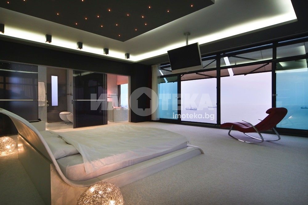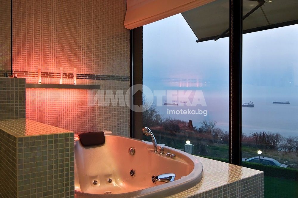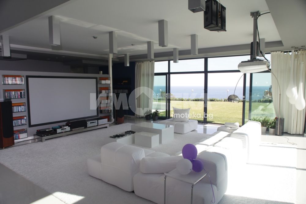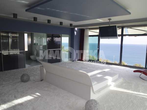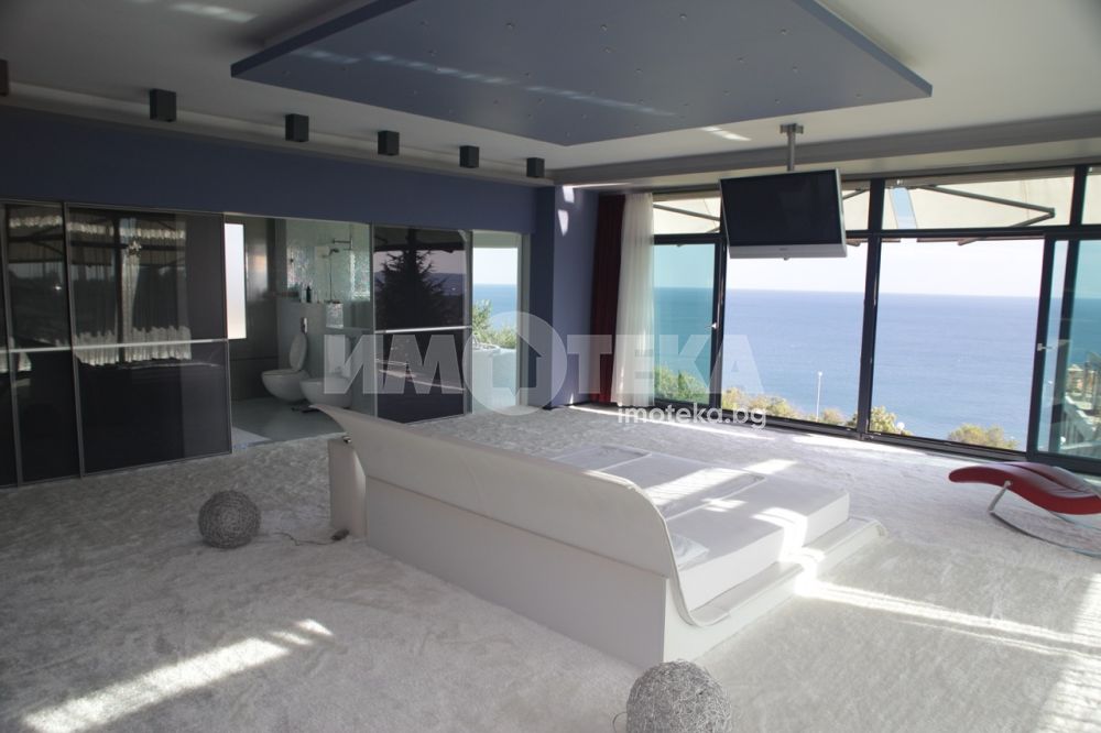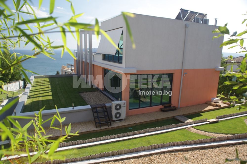 Разпределение: Първи етаж: на площ от 120 кв.м е разположена дневна с трапезария и кухня, баня с тоалетна и сервизни помещения. Втори. етаж: родителска спалня 80 кв.м с нескриваема морска гледка, баня с вана и гардеробна; три спални, всяка от които е със самостоятелна баня и санитарен възел. Трети етаж: фитнес зала и грандиозна тераса. Къщата е с просторен, добре поддържан двор с кът за сядане. В цената е включена такса за градинар и периодично почистване ВЪЗМОЖНОСТ ЗА КРАТКОСРОЧНО НАЕМАНЕ.