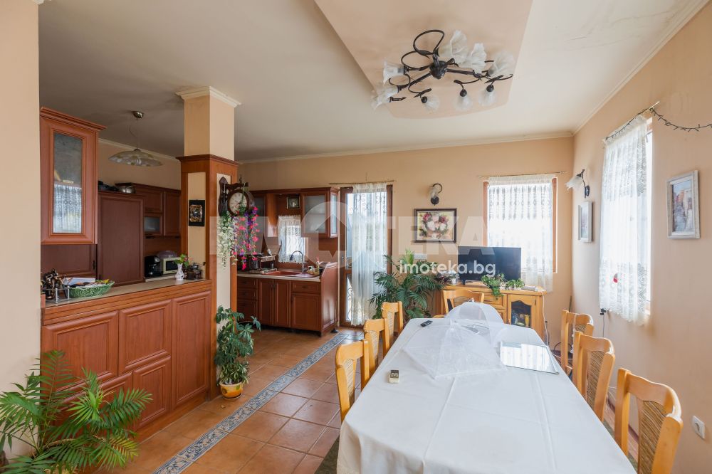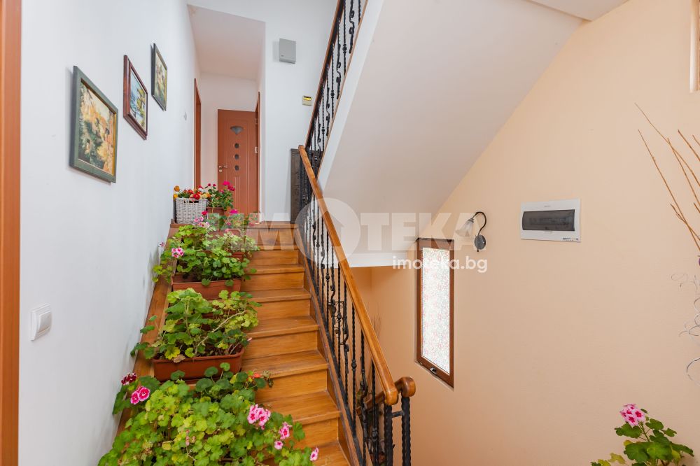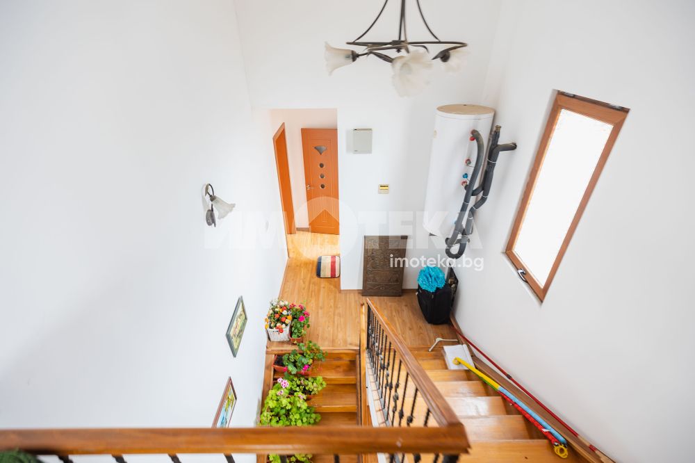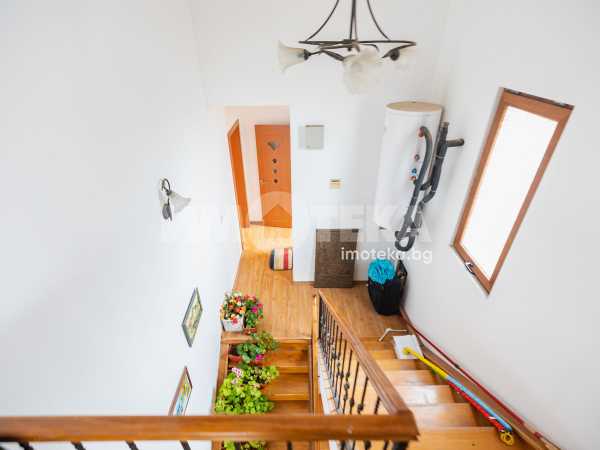 Панорамна къща с нескриваема Морска гледка. Намира се на главната улица - арх.Манол Йорданов разделяща местностите Св.Никола и Долна Трака. Имота е в отлично състояние и е изграден от два етажа и два полуетажа.. На партерно ниво се намира: - Просторна Дневна от 55кв.м. с обособени Кухненска, Трапезарна и Холна зони; - Санитарно помещение. По хубави широки стълби/масив се отива на Първия полуетаж, където има: -Спалня/тип кабинет; -голяма Гардеробна и Баня/тоалет.