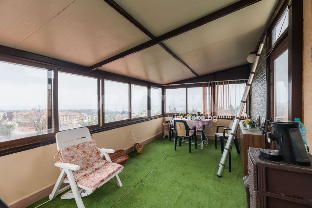 - Покривния етаж представлява Затворена зона от ПВЦ дограма, служаща за релакс и плаж, където може да се наслаждавате на Необятната Морска панорама, нескриваема, от друг имот.!.