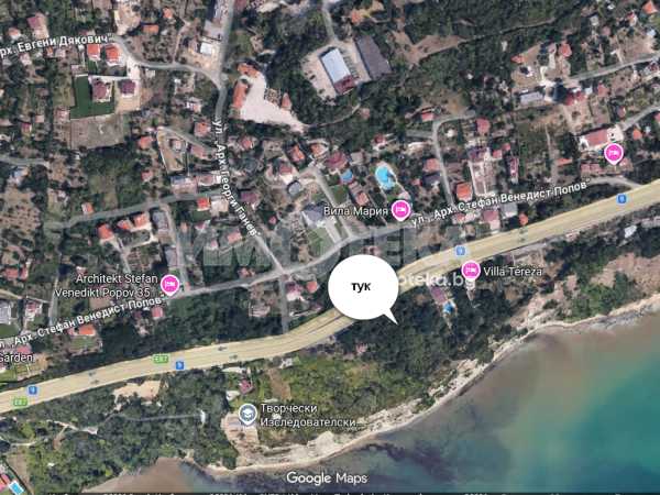 Парцел с ПУП, морска панорама от кота 0. Ток, вода, канал вътре в парцела. Ориентиран по дължина към морето.