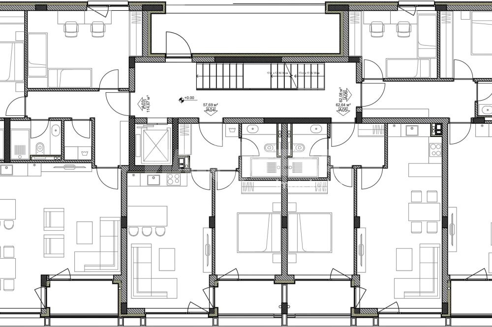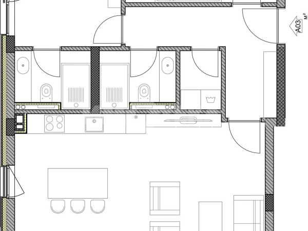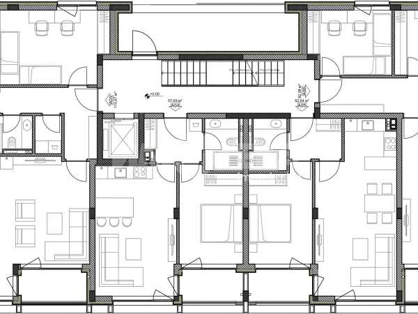 Тристаен апартамент, разположен на втори етаж от новострояща се жилищна сграда. Апартаментът разполага с просторен дневен тракт, две спални, две санитарни помещения, перално, коридор,тераса и маза. Изложението е север-юг.