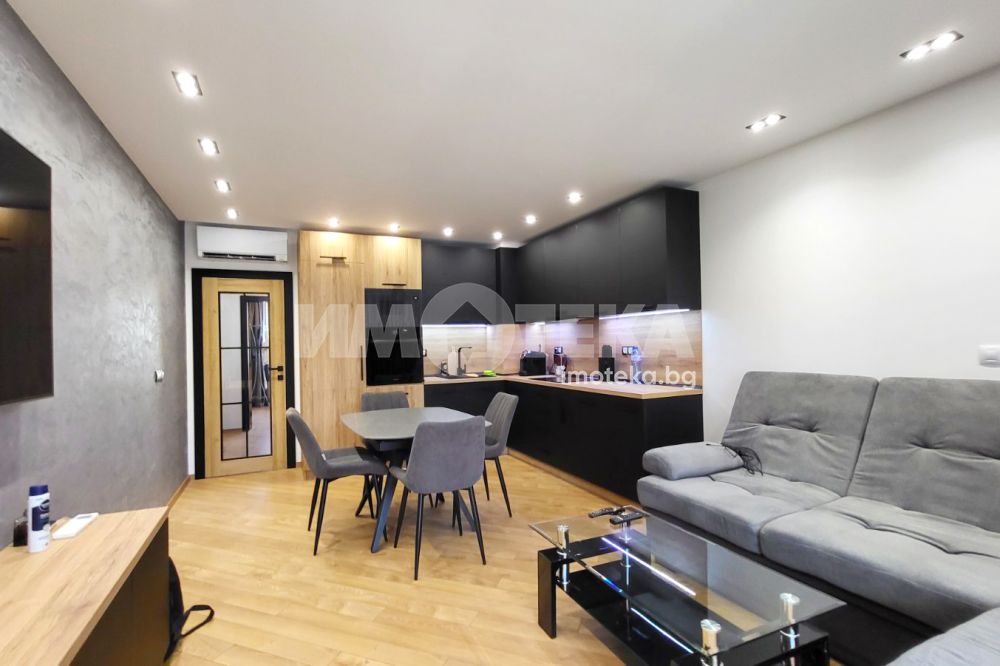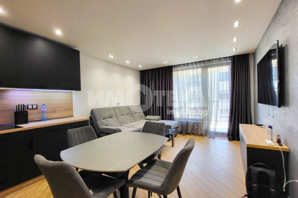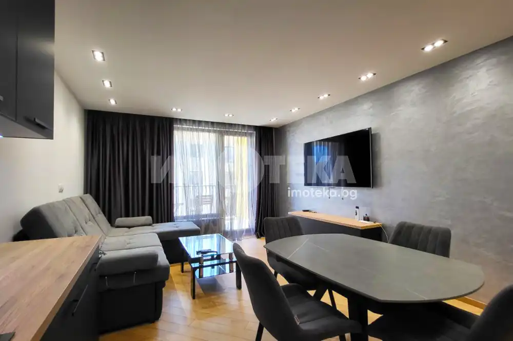 Разпределението е практично и функционално, с отворени и светли пространства, а обзавеждането е подбрано с вкус – елегантно, ненатрапчиво и предразполага към уютна атмосфера. Апартаментът се продава във вида от снимките.