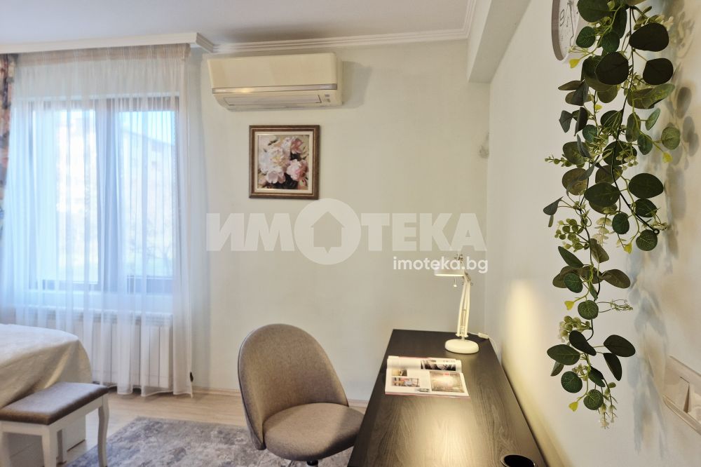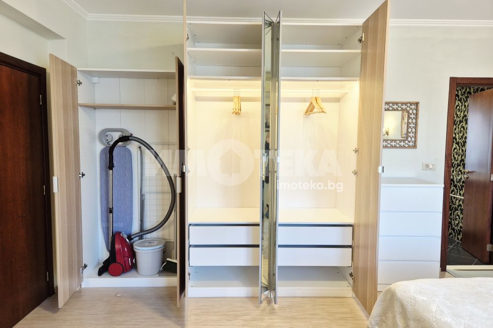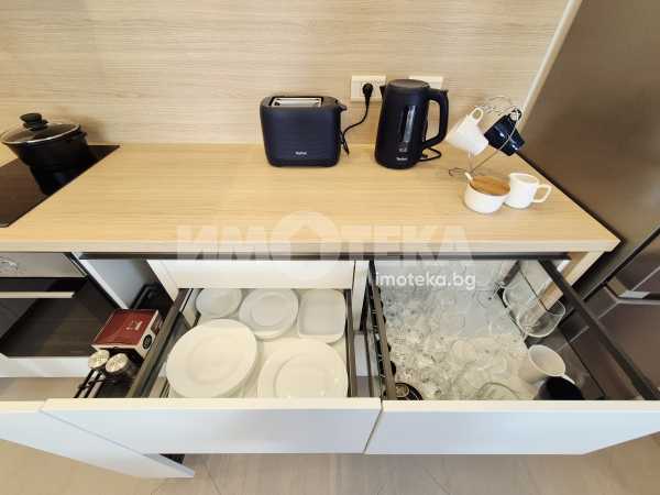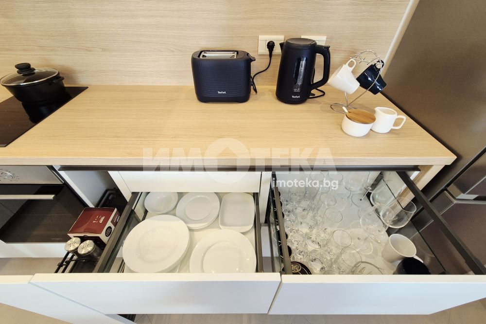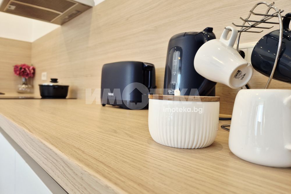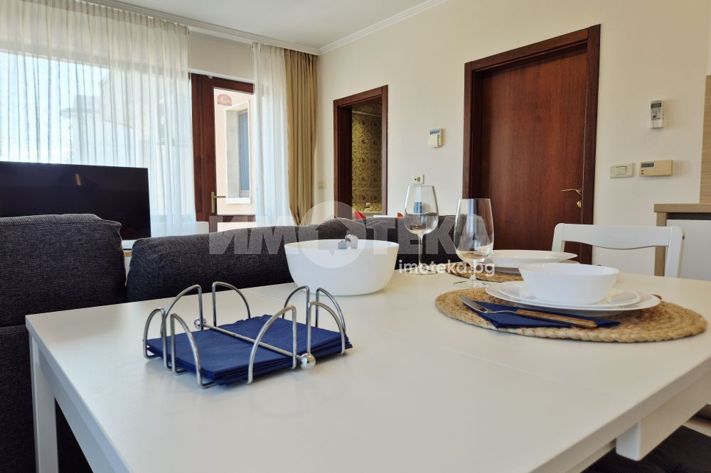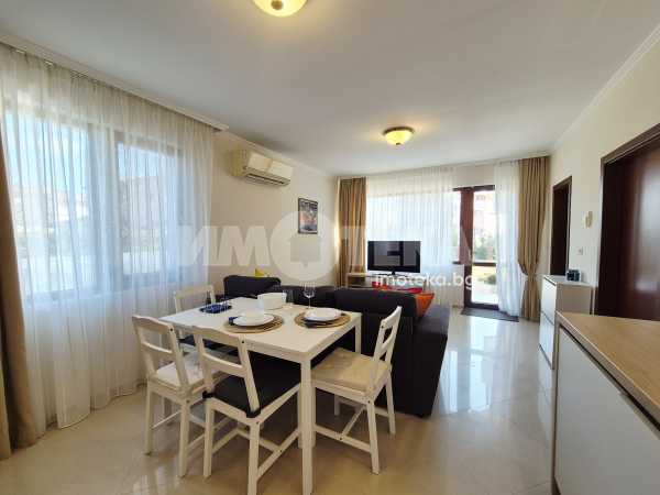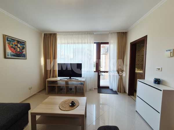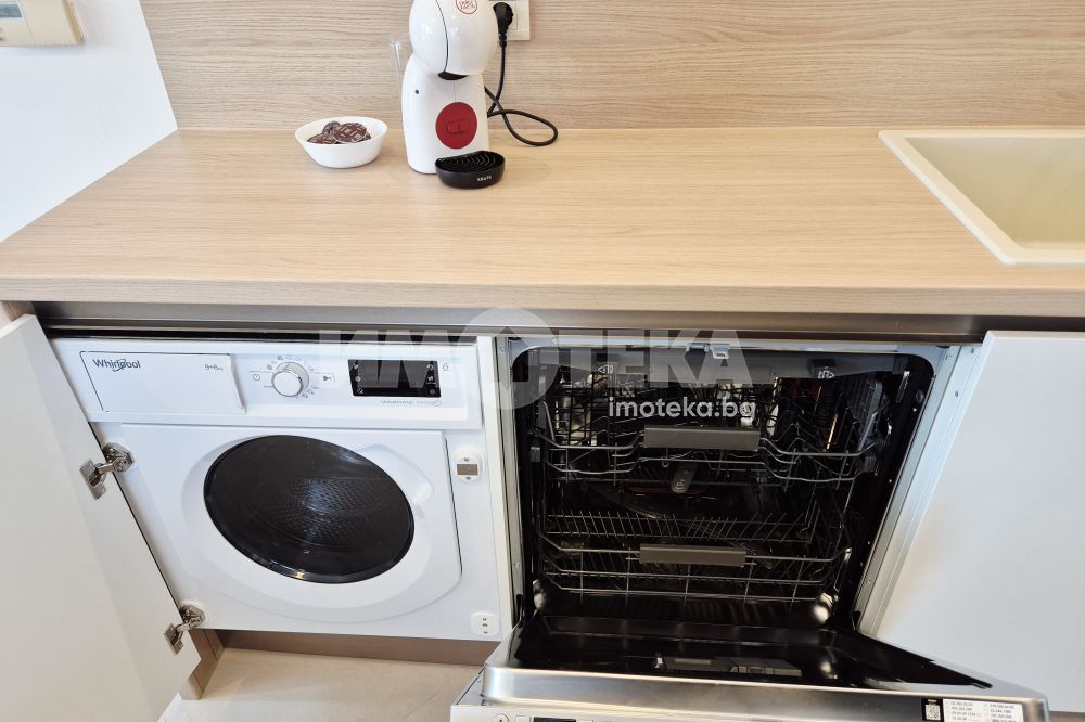 Представяме Ви нов, уютно обзаведен апартамент с една спалня. Жилището представлява част от семейна къща, като разполага с отделен вход. Директно се влиза в кокетна дневна с кухненска част (бяла техника, вкл. съдомиялна, пералнята е комбинирана със сушилня, мека мебел, телевизор), баня с тоалет. Спалня с голямо легло, гардероби и собствена баня с тоалет. Отопление - два климатика. Малка веранда пред жилището и възможност за ползване на барбекю.