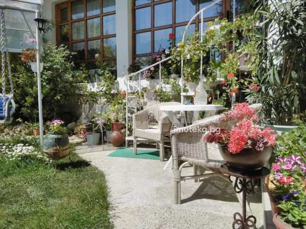 Дворът е красиво аранжиран с декоративна растителност. Има зони за отмора и възможности за паркиране.