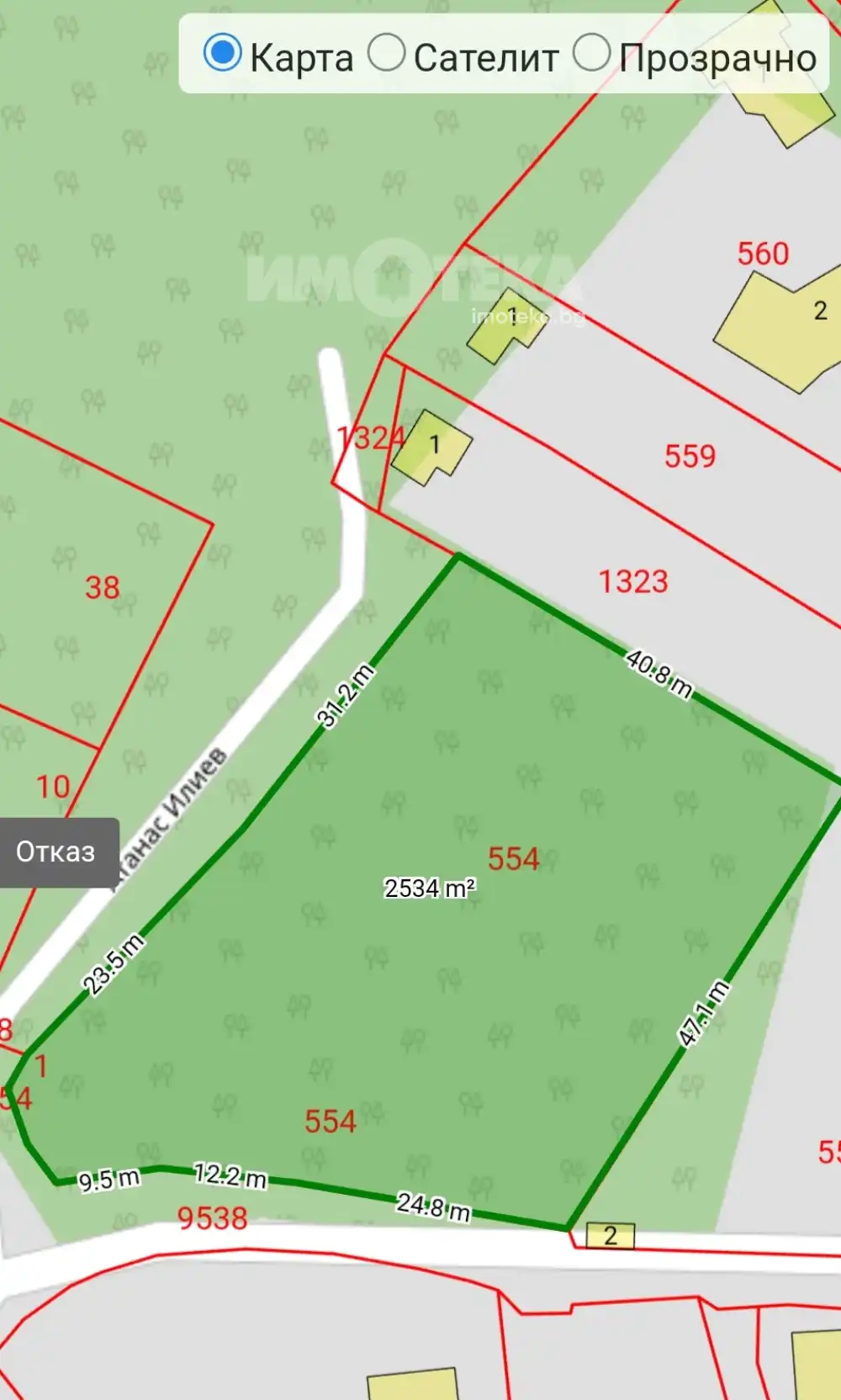 Парцел с изготвен и влязъл в сила ПУП в местност "Траката" с лице на две улици, изцяло асфалтов достъп, ток, вода, канализация на граница. Цената е с ДДС.