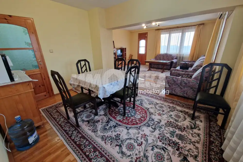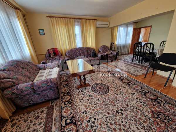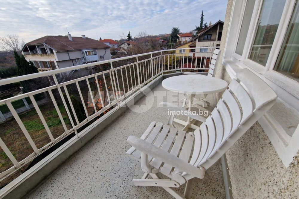 Отдаваме под наем обзаведен етаж от къща в местност Траката. Състои се от просторна дневна с трапезария, отделна оборудвана кухня, спалня с двойно легло, детска стая с две единични легла, килер, тоалетна, баня с вана и тоалет, два балкона с излаз от всички стаи, коридор. Отоплението е с климатик и радиатори. Възможност за паркиране в двора на къщата. В двора има беседка с барбекю, красивата градина също е на разположение на наемателите. Отдава се дългосрочно.