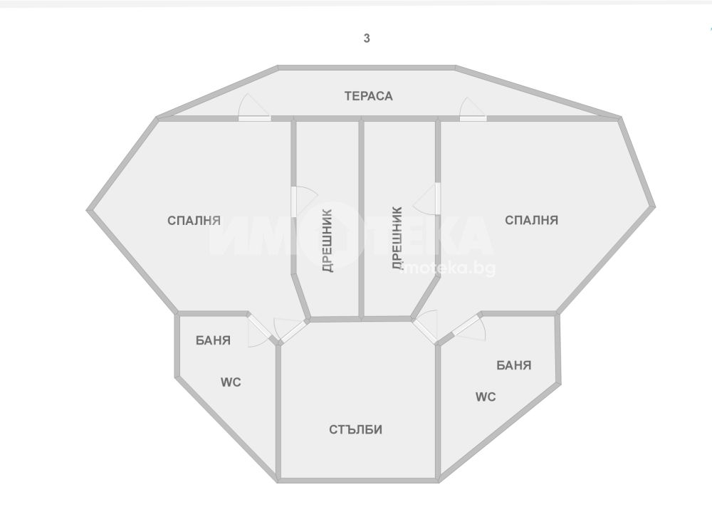 - Стая-гардероб, голяма усвоена тераса.