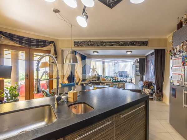 Предлагаме на вашето внимание уникален имот с фасада от камък, тиково дърво и силиконова мазилка. Къщата е с площ от 316 кв.м. и е разположена в озеленен и поддържан двор с площ от 553 кв.м. Имотът предлага нескриваема морска и градска панорама.