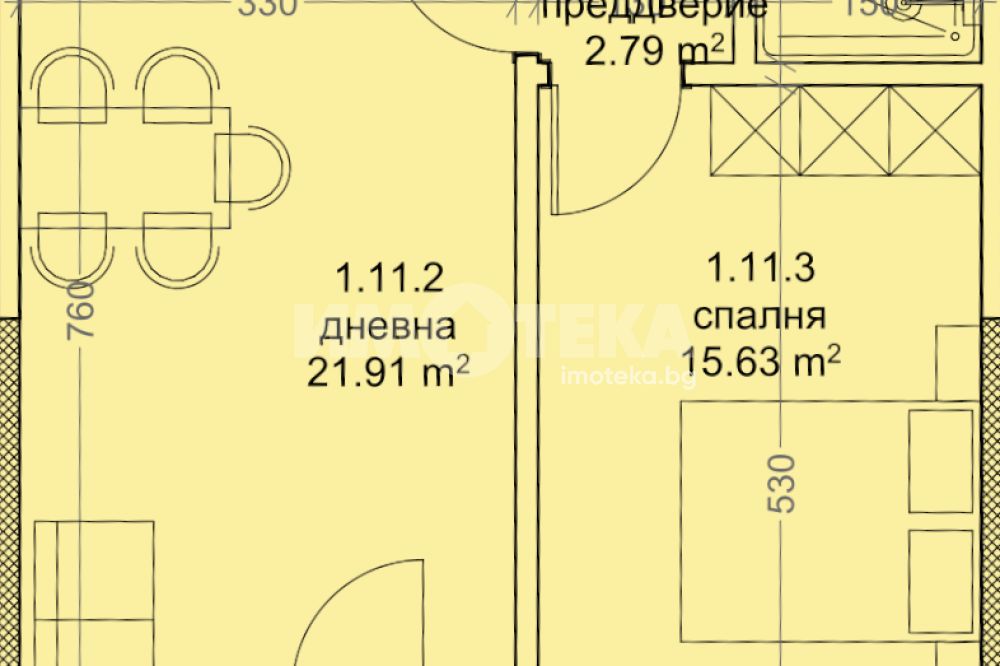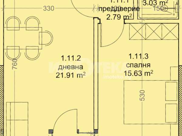 Апартаментът е с функционално разпределение и обща площ от 65 кв.м, състоящо се от: