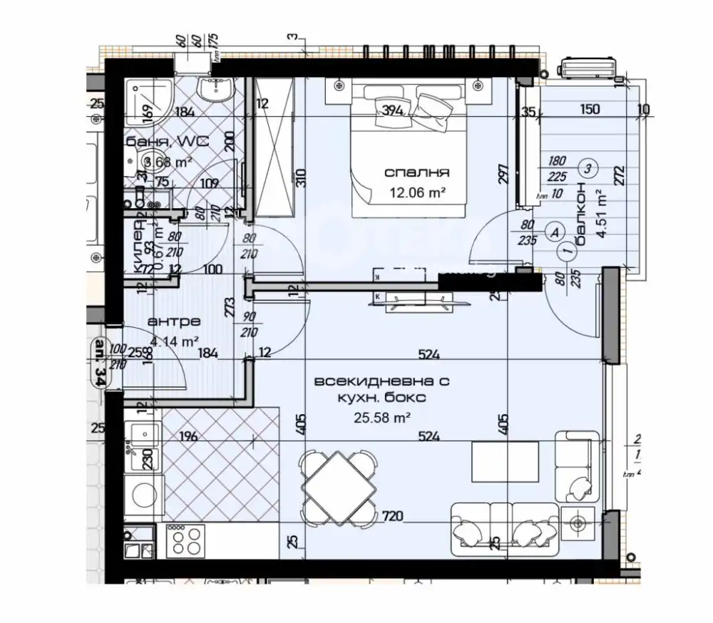 Двустаен апартамент, в нов изключително луксозен жилищен проект с отлична локация в кв. Младост. Жилището се състои от дневен тракт 26 кв.м, спалня 12 кв.м, баня с тоалет, килер, тераса. Завършен по БДС на шпакловка и замазка, с блиндирана входна врата. Възможност за закупуване на закрито или открито паркомясто или гараж. Сградата предлага двустайни и тристайни апартаменти, които са подходящи както за лично ползване, така и за инвестиция.