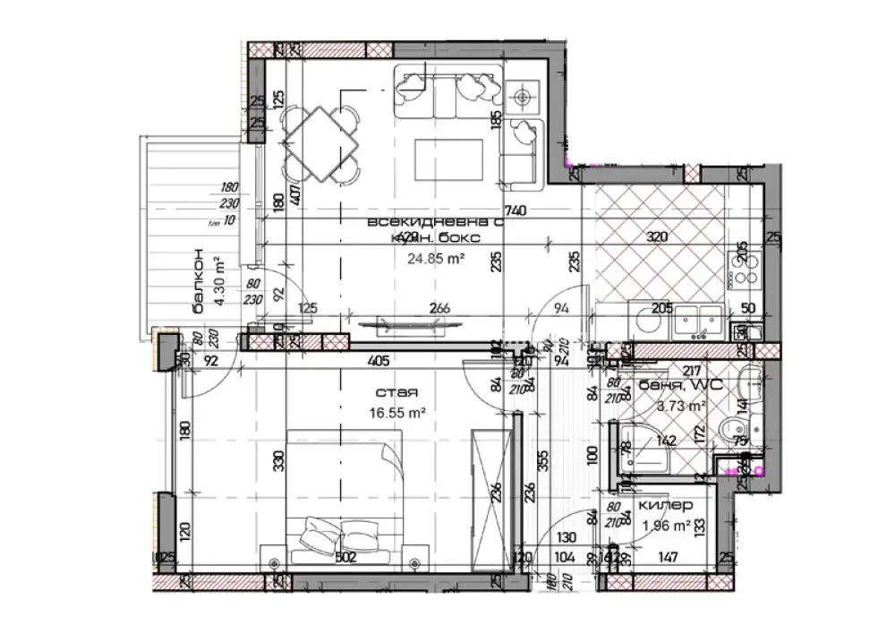 Сградата предлага двустайни и тристайни апартаменти, които са подходящи както за лично ползване, така и за инвестиция.