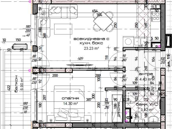 Двустаен апартамент, в нов изключително луксозен жилищен проект, с отлична локация в кв. Младост. Жилището се състои от дневен тракт 23 кв.м, спалня 14,5 кв.м, баня с тоалет, дрешник, тераса. Завършен по БДС на шпакловка и замазка, с блиндирана входна врата. Възможност за закупуване на закрито или открито паркомясто или гараж.