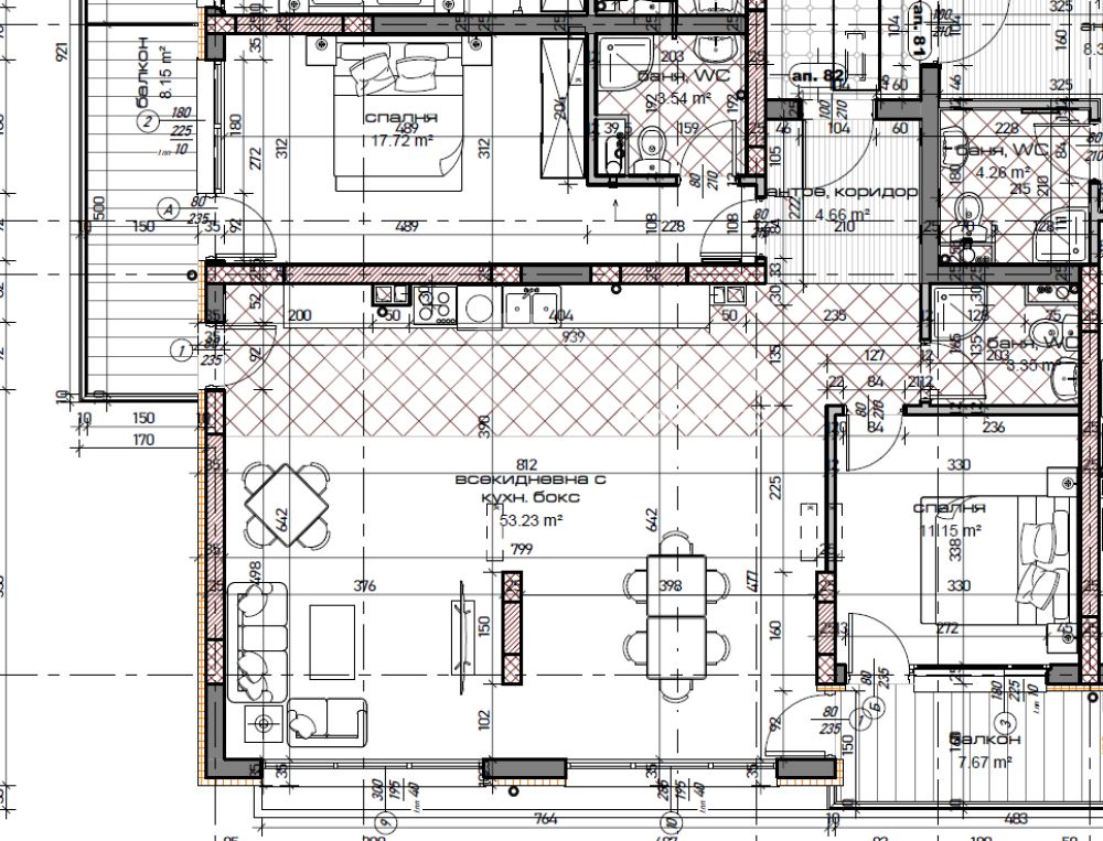 Прекрасен тристаен апартамент с югозападно изложение, с възможност за три спални. В нов изключително луксозен жилищен проект, с отлична локация в кв. Младост. Жилището се състои от огромен дневен тракт 53 кв.м, две спални по 18 и 12кв.м, две бани с тоалет, две тераси. Завършен по БДС на шпакловка и замазка, с блиндирана входна врата. Възможност за закупуване на закрито или открито паркомясто или гараж.