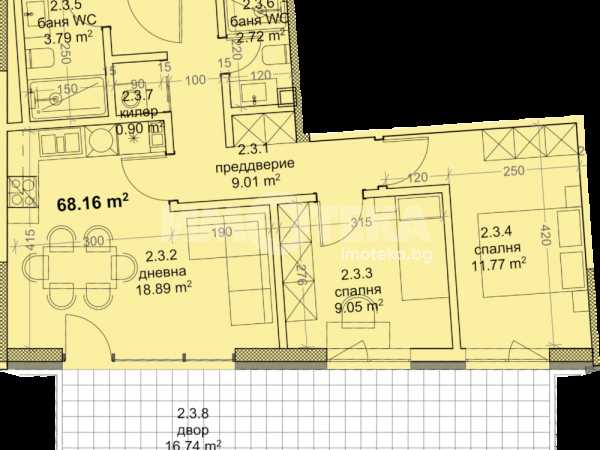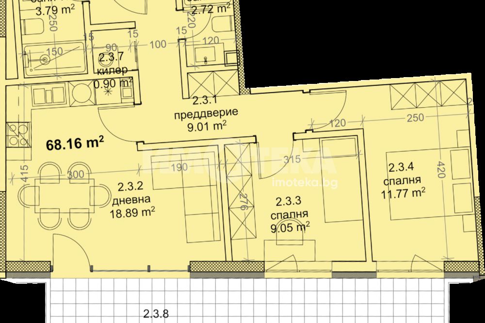 Светъл и уютен тристаен апартамент, в нова сграда в строеж, с модерна визия и отлично местоположение. Жилището се състои от просторна дневна с място за кухненски бокс, две удобни спални, функционален коридор, килер с перално и баня с тоалетна.