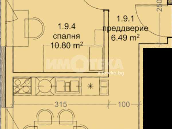 Просторна дневна с кухненски бокс и трапезария, с излаз на тераса и големи прозорци, осигуряващи естествена светлина и комфорт през целия ден;