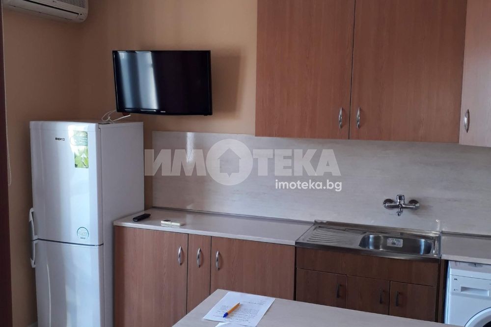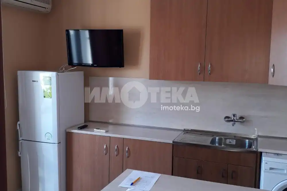 Двустаен апартамент, изцяло вътрешен на едно изложение. Жилището се предлага нашълно обзаведено и оборудвано. Разполага с дневен тракт, спалня, комбиниран санитарен възел, килер, остъклена тераса пред дневната и тераса пред спалнята.Сменени ВиК и Ел. инсталации, PVC дограма. Готов за нанасяне.