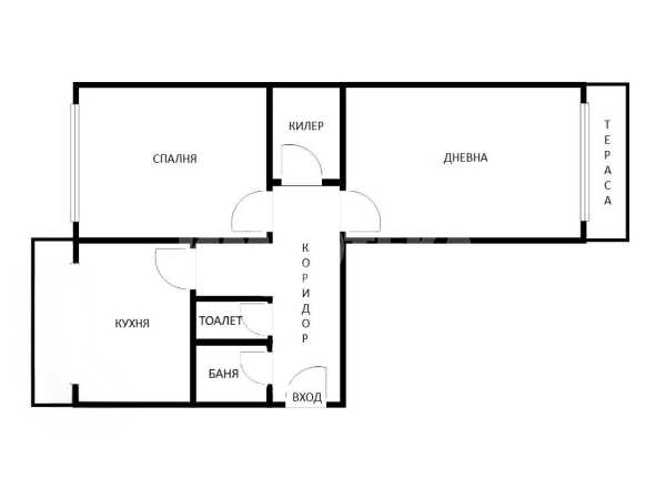 Апартамента се състои от хол с тераса, кухня с тераса и спалня. Баня ,тоалет, килер и маза. Продава се необзаведен с площ от 60 кв.м.
