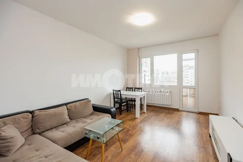 Двустаен обзаведен апартамент в близост до ледената пързалка в кв. Младост! Разположен е на етаж 6 и се състои от кухня-трапезария, хол с тераса, спалня, баня, отделно тоалет, килер и коридор. Жилището е в добро състояние и се продава с наличното обзавеждане и оборудване. Разполага с нова дограма Rehau, външна изолация, сменени Ел и ВиК инсталации. Изложението на апартамента е изток-запад с много въздух и простор. Прилежащо избено помещение.