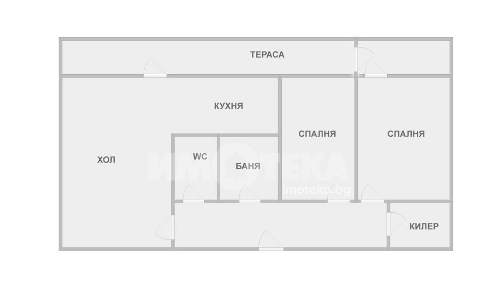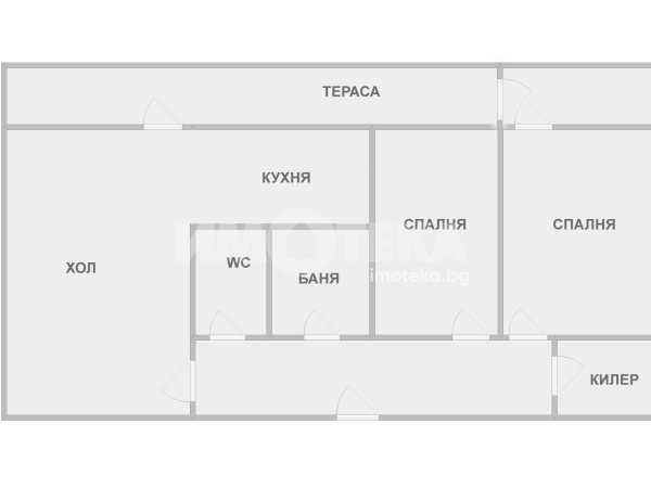 Жилището се състои от: голям коридор, дневна с кухненски бокс, две спални, баня, тоалет, килер, както и тераса пред трите стаи(1/3 от терасата е остъклена) + прилежащо избено помещение, което е в отлично състояние!