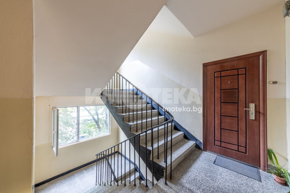 Панелна сграда с контролиран достъп и отлично поддържани общи части, сменена дограма в стълбището, чист и спретнат вход.