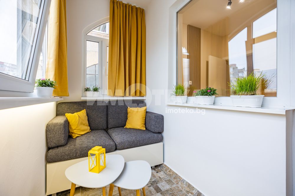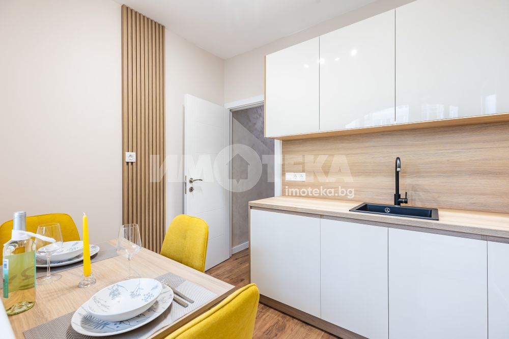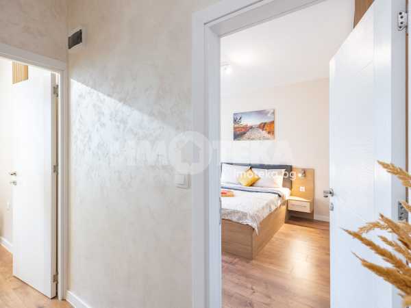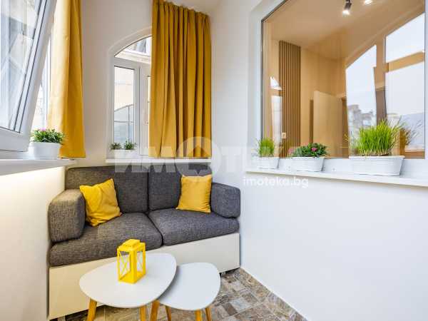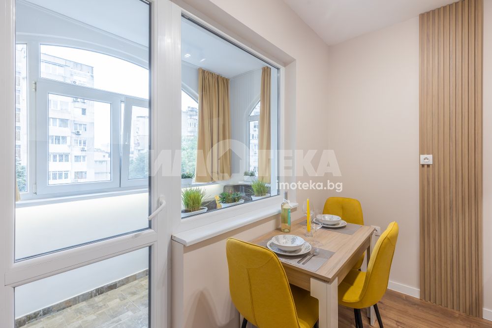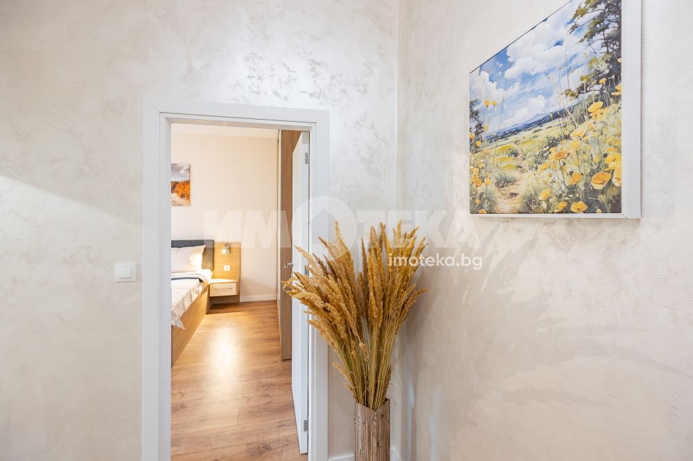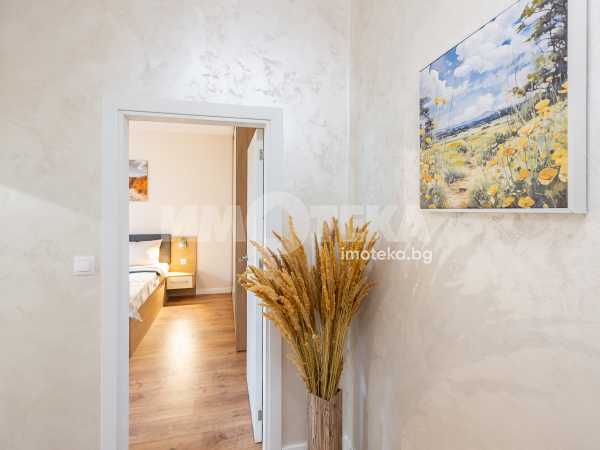 Кокетно обзаведен и уютен апартамент след основен ремонт, с изцяло южно изложение. Жилището е с чисто ново обзавеждане и оборудване. Състои се от кухня с вградена кухня (напълно оборудвана) с излаз към остъклен балкон, комфортна спалня (голям гардероб, кът за работа/учене, климатик), баня/тоалет заедно, коридор с портманто (с достатъчно място за съхранение).