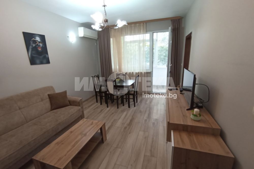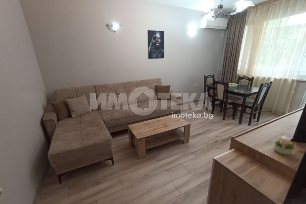Просторен, светъл апартамент с южно изложение. Жилището е стилно обзаведено, с нови мебели и електроуреди. Във всекидневната има обособена холова част с мека мебел и секция, кът за хранене и кухненски бокс. Спалнята е с легло спалня. Банята и тоалета са отделно.