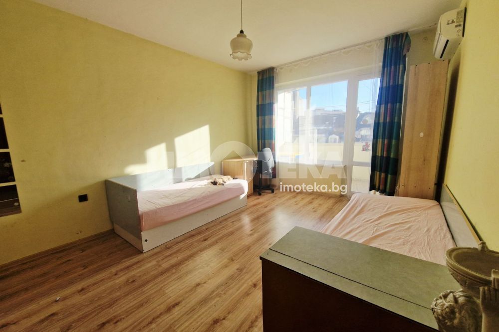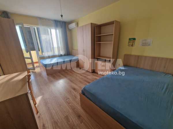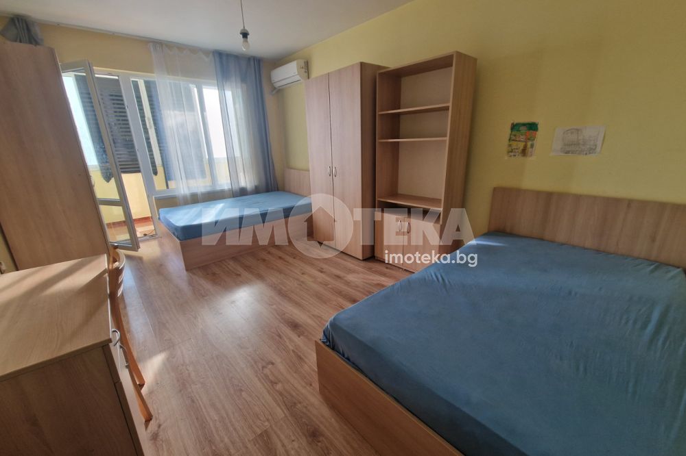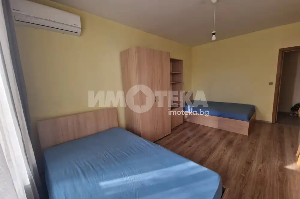 Отдаваме под наем апартамент с две спални в района на ул. Пирин. Състои се от оборудвана кухня, две климатизирани спални, коридор, баня, килер и остаклени балкони.