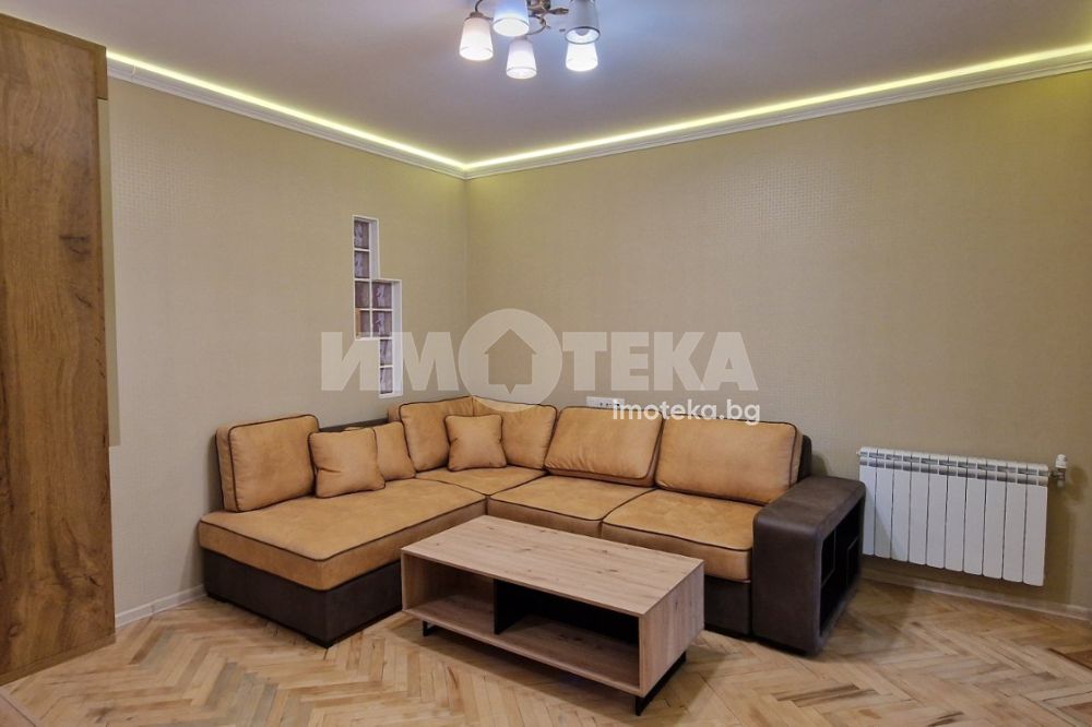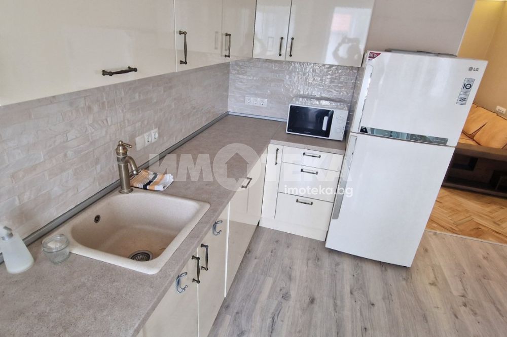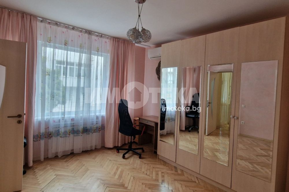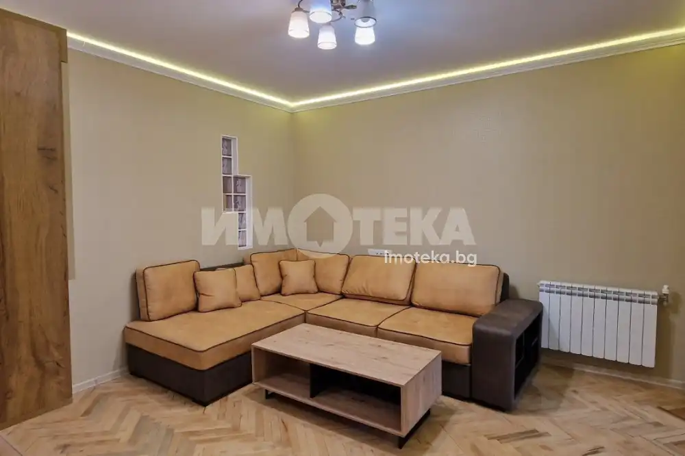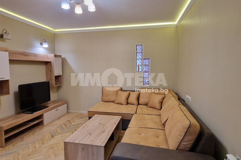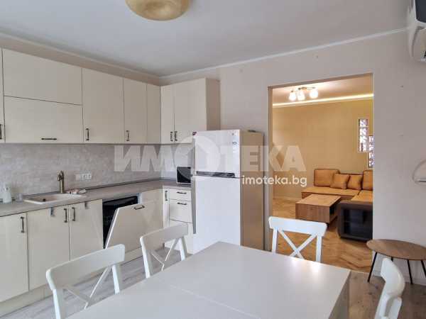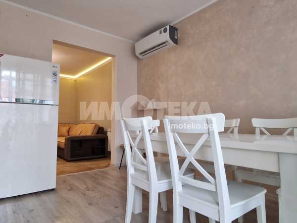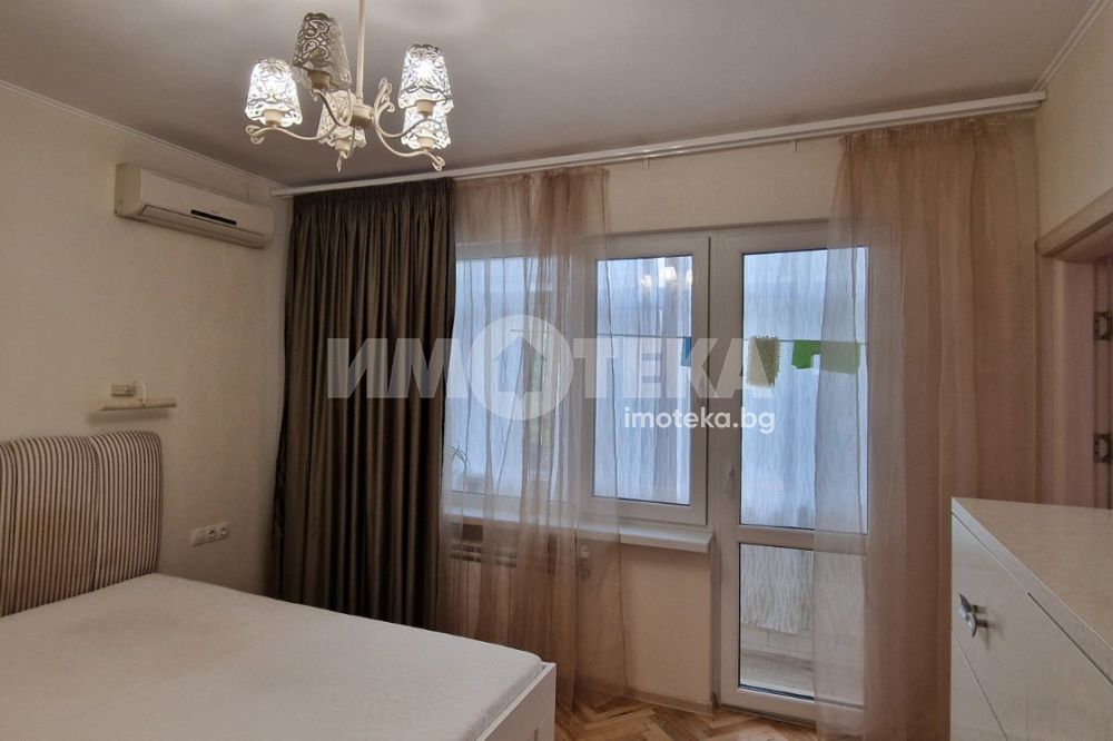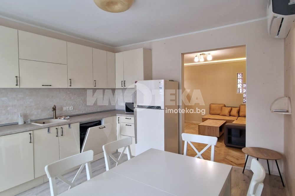Отличен тристаен апартамент, състоящ се от светла дневна с кухненска част, две спални, баня с тоалетна, две остъклени тераси. Имота е напълно обзаведен и оборудван с качествени мебели и уреди. Всички стаи има климатик, както и локално парно на ток. Възможност за паркиране във вътрешен двор. Готовност за нанасяне веднага.