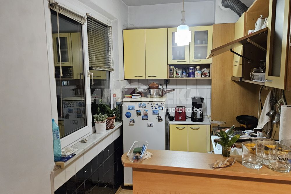 Панелен апартамент- кухня, хол, две спални, четири сервизни помещения, две тераси и коридор. На среден етаж с отлична локация! Частично подменена дограма!