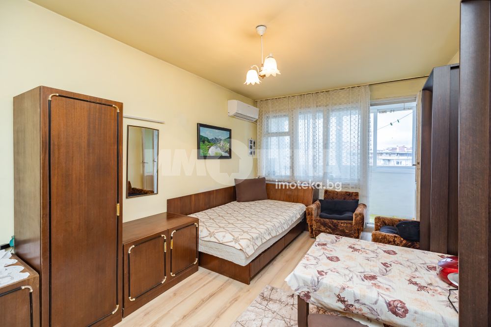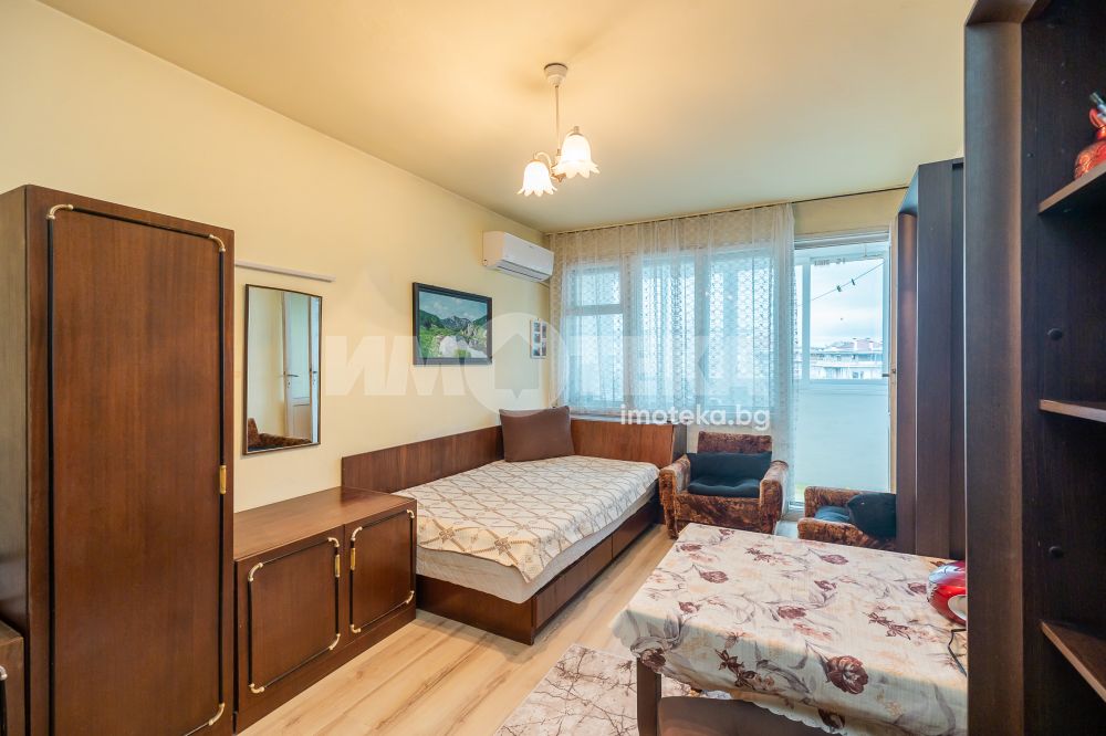 Адрес предлага прекрасен двустаен апартамент, разположен в тухлена сграда в близост до сградата на Община Варна. Апартаментът се състои от входно антре, просторен хол, кухненски бокс, спалня, баня с тоалетна, килер и остъклен балкон. Жилището се предлага напълно обзаведено и оборудвано, заедно с прилежащо избено помещение с площ от 9,45 м2. Отличната локация и функционалното разпределение на стаите го правят подходящо както за лично ползване, така и за инвестиция.