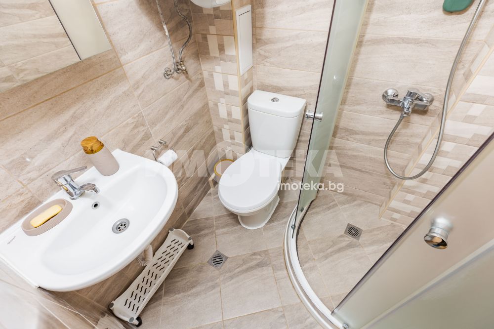 Предлагаме Ви уютно обзаведен апартамент в района на Общината. Жилището се състои от кухня - бяла техника вкл. съдомиялна, трапезна част с мека мебел, климатик - остъклена тераса. Просторна дневна с разтегателен диван, климатик, като има опция да се ползва за втора спалня; преходна спалня - легло и гардероб, обща тераса пред двете стаи. Баня с тоалет.
