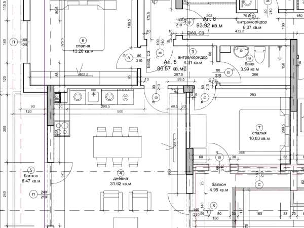 Прекрасно разпределен тристаен апартамент с огромен дневен тракт, две хубави спални, две тераси. Светъл, среден, топъл апартамент. Само два апартамента на етаж. Изключително приятно жилище.