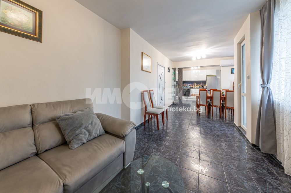 Имотът се намира в тухлена сграда, на среден етаж, с 90 кв.м чиста жилищна площ.