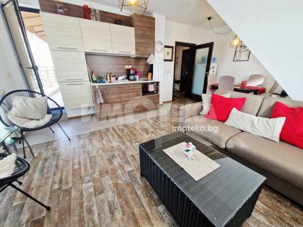 Жилището се състои от просторна дневна ,обзаведена с кухненски шкафове,хладилник и готварска печка.